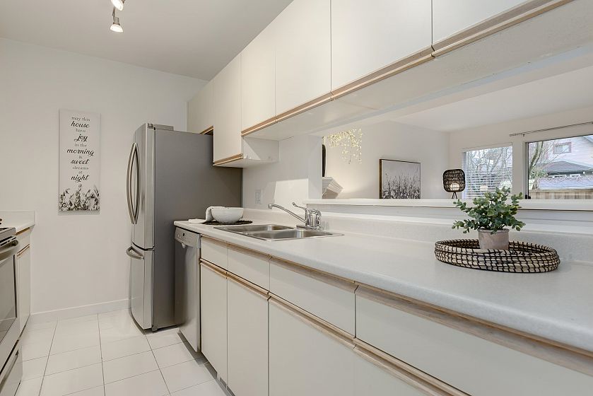 Welcome to this tastefully updated 3-bed, 3-bath, three level townhome in a welcoming family friendly community. The main floor features an open-concept living & dining area with wood burning fireplace, kitchen with view into main living space, 2-piece powder room, private patio, & attached garage. Two bedrooms & full bathroom occupy the second floor, & the top level hosts a spacious primary suite with ensuite bathroom & private balcony with beautiful mountain views. Owners have pro-actively replaced the poly-b piping in the home. Updates include new flooring, fresh neutral paint, & modern fixtures throughout, this move-in-ready home includes a secluded patio area & is conveniently located a block away from Main St, walking distance to community centre, shopping, school and transit.