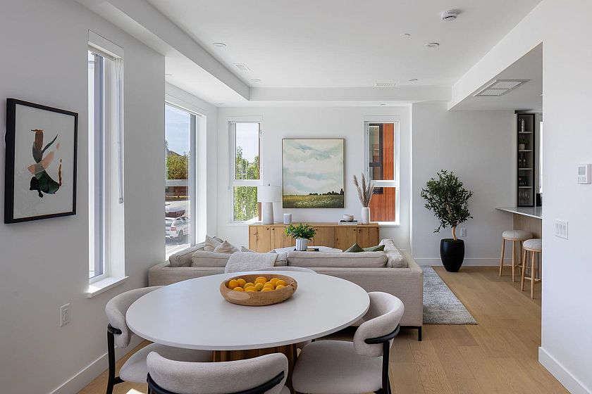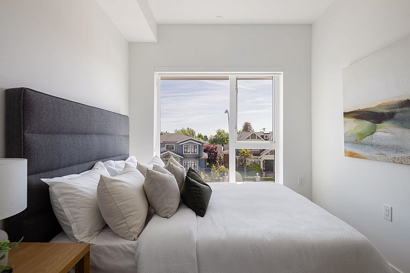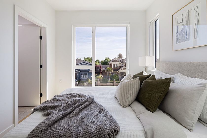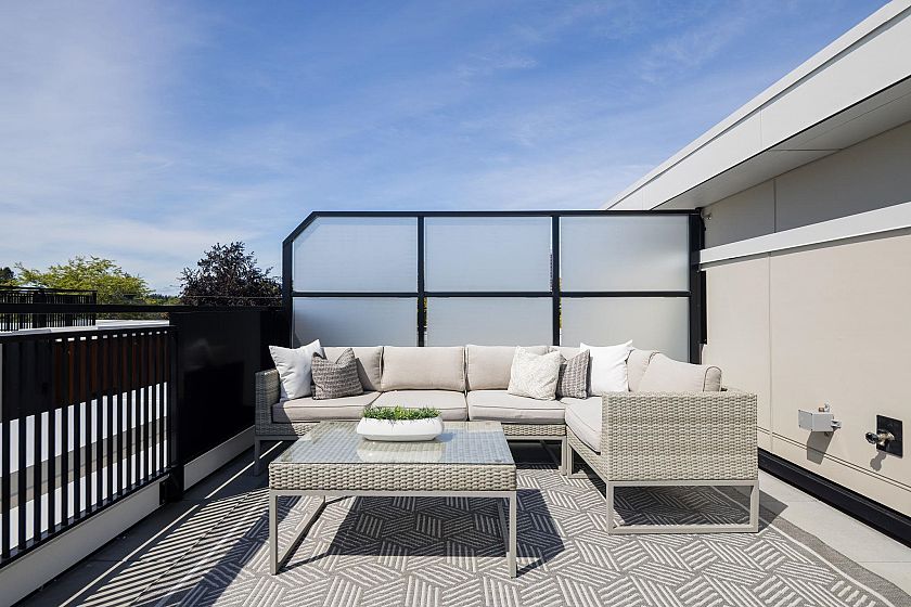Be W 49th by Modella Developments is a collection of 17 newly built move-in ready 2 and 3-bedroom homes located in Vancouver's prestigious West Side. Tucked into a community of single-family residences, Be W 49th offers the security of neighbourhood living with the accessibility of city amenities and rapid transit, just beyond your doorstep! This corner 2-level townhome features 3 beds and 2.5 baths across spacious 24'5" wide interiors with 9' ceilings and engineered oak floors throughout. Culinary kitchens include full size Gaggenau appliances and plenty of open and closed kitchen storage. Entertain and enjoy expansive views on the large rooftop terrace. Includes 1 EV ready parking and storage locker. Open house Sat Feb 21, 2-4PM.