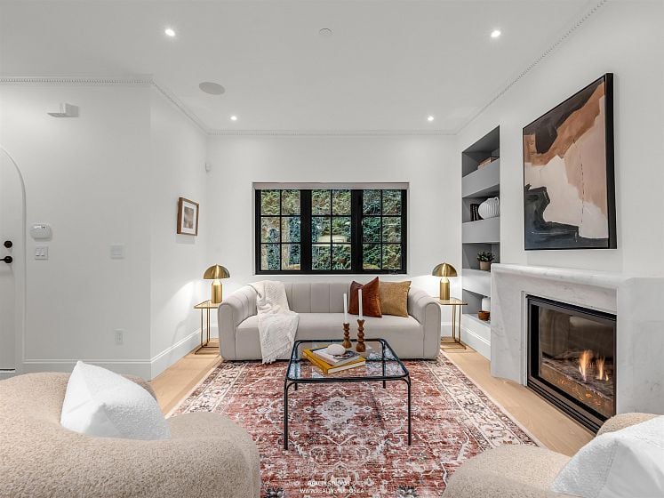 Welcome to a beautifully crafted 3-level townhome at The Residences on the Greenway, a boutique collection of just four homes in prestigious Shaughnessy. Developed by Clearwater Development Group in partnership with Lyndan Properties, this elegant character conversion offers a refined main level with open living/dining, a designer Fisher & Paykel kitchen, and powder room. Upstairs features a primary bedroom with ensuite plus a second bedroom and ensuite. The lower level includes a rec room, third bedroom, full bath, and private patio. Enjoy your own irrigated garden space, secure EV-ready garage, and timeless interiors with custom millwork, stone fireplace, and oak flooring.