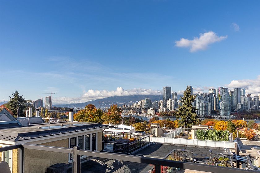 Ultra-private, completely detached townhome in an exclusive 4-unit complex by renowned builder, Trasolini-Chetner. This exceptional home feels like a single family home in a private, gated community. Split-level floor plan with amazing 360 degree False Creek water, North shore mountain and city view, from your stunning personal 328 sq.ft. rooftop deck; perfect for all your outdoor entertaining & fireworks viewing! Designer kitchen w/quality appliances, incl gas range. True 3 bedroom, 2.5 bath, w/large family room below(could be 4th bedroom). Meticulously maintained. Strata fee includes all heat, hot water & gas! Walk to VGH, Granville Island & seawall, Skytrain, shopping, cafes & more. 2 secure parking stalls & ample storage. Pet & rental friendly.