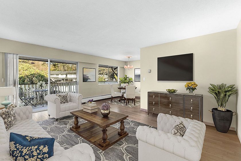 Welcome to Evergreen Estates. This bright 2 bedroom, upper level home located in North Vancouver, where daily life feels simple & connected. The layout is great for family time and entertaining- with a large living room leading to a lovely balcony to take in the green space & hear the birds sing. Walk through Kitchen & Bamboo flooring flow throughout. As an undivided interest property, it keeps things streamlined as strata fee includes property taxes, heat, hot water, gardening & management - so no surprises and more peace of mind. It's a natural fit for downsizers & young folks alike. It is in walking distance to trails, green space, Capilano College, Shops & Highway. A practical home in a genuinely lovely setting. Please reach out for more details. OPEN HOUSE Sat Jan 31 / 1:00 - 3:00PM