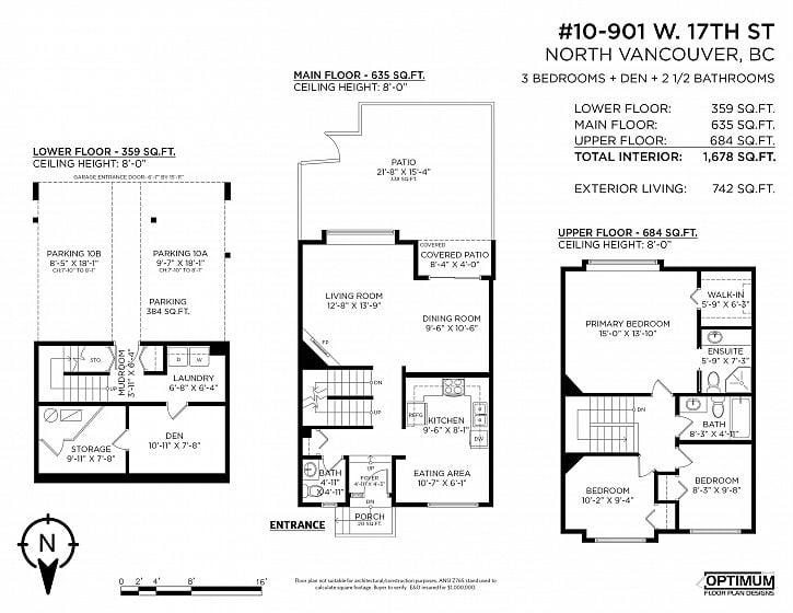 Welcome to Heywood Lane! A professionally managed 18 unit strata located in the heart of Mosquito Creek. This south-facing 3 bed, 3 bath + den townhome offers a great layout & a 330sqft sunny patio just off the living & dining, perfect for entertaining. The main level features a spacious living room w/ a cozy fireplace & bay window. Upstairs delivers the ideal family layout with all three bedrooms on one level, a primary bedroom that easily fits a king-size bed, complete with a walk-in closet & ensuite. Downstairs provides functionality with tons of storage, mudroom with dedicated laundry room, a versatile den/office, & direct access to your side-by-side 2 parking stalls. A walkable lifestyle, steps to Cap Mall, Heywood Park, & close to Westview Elementary and Carson Graham Secondary.