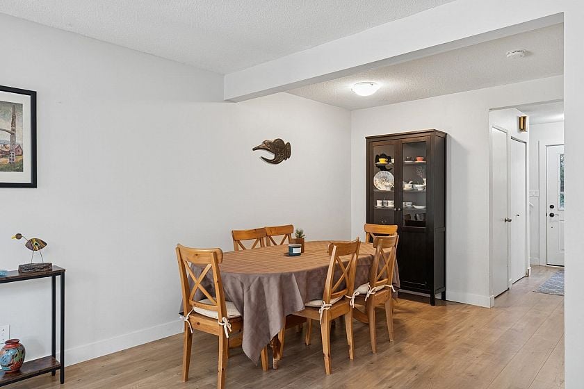 Enjoy the best of Deep Cove living in this spacious 4-bdrm townhome, ideally located just steps from the Village yet tucked away for privacy. The main floor features a cozy living & dining area w/ electric fp, sliding doors to a generous fenced patio w/ direct access to common grounds—perfect for kids and pets. The kitchen provides ample cupboard space w/ an adjacent eating area, plus a convenient 2-pce bathroom. Upstairs features three comfortable bedrooms and an updated 4-pce bath. The lower level adds excellent flexibility w/ a family rm, 4th bdrm, 3-pce bathroom, & laundry/utility space, ideal for guests, teens, or a home office. Recent updates include vinyl floors, dble-paned windows, and refreshed bathrooms. Steps to shops, restaurants, marina, trails, and outdoor recreation.