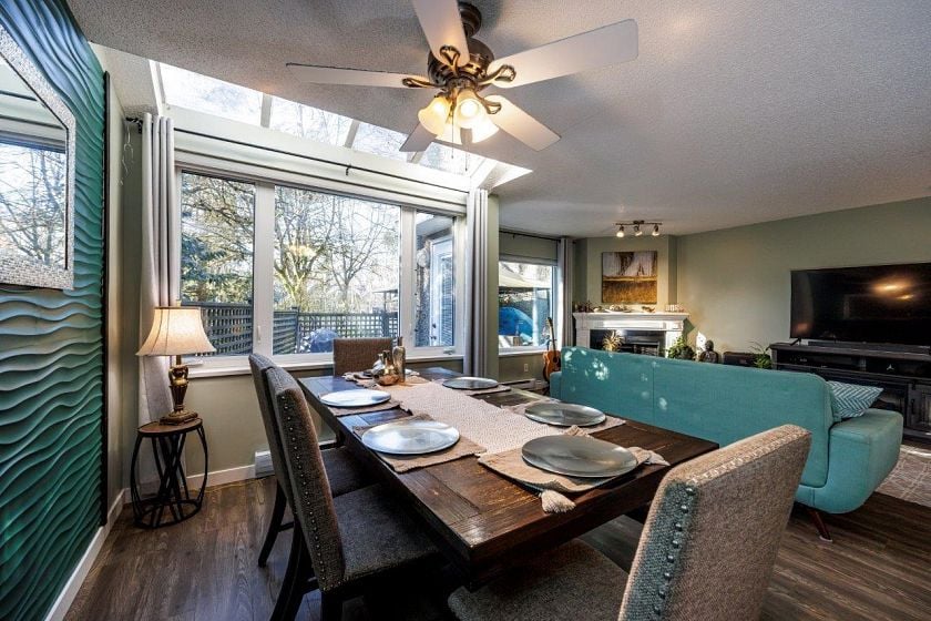 Champlain Ridge - Refined Living. Rare 1,403 sq ft two-level corner residence offering 3 bedrooms and 3 bathrooms, overlooking a serene green courtyard. Updated in 2020 this home features an open layout with three bedrooms above, powder room on the main, and a spacious laundry room. Sun filled southwest-facing private garden. Family oriented community, steps to parks, schools, shopping and transit. One parking and one storage locker. Can anyone say " HOME SWEET HOME"
