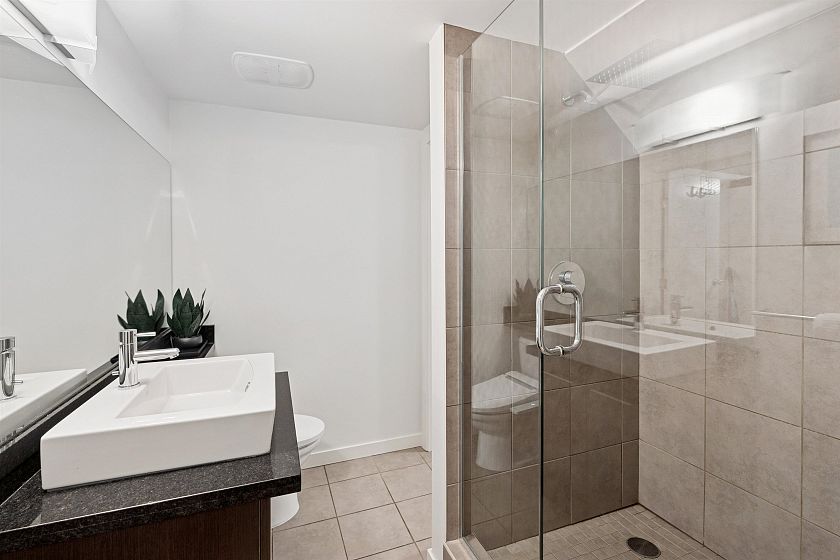 Rarely available concrete two-level townhome in the heart of Central Lonsdale.This home showcases a thoughtful reverse floor plan with two private bedrooms on the lower level,including a generous primary suite with spacious walk-through closets. Upstairs, the main level offers a bright, open layout with floor-to-ceiling windows, a chef-inspired kitchen, and a convenient powder room. Recent upgrades include engineered hardwood and carpet,new cabinetry with custom pull-out pantry, Caesarstone quartz counters,barn doors in the bedrooms,and custom organizers in the primary closets. The large,private patio has been newly retiled and features a natural gas hookup-ideal for outdoor dining and entertaining.Ample in-suite storage plus an additional storage locker complete this exceptional offering.