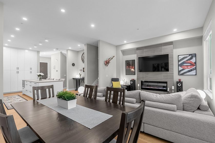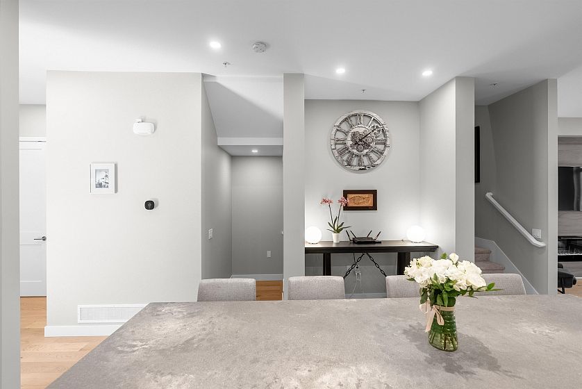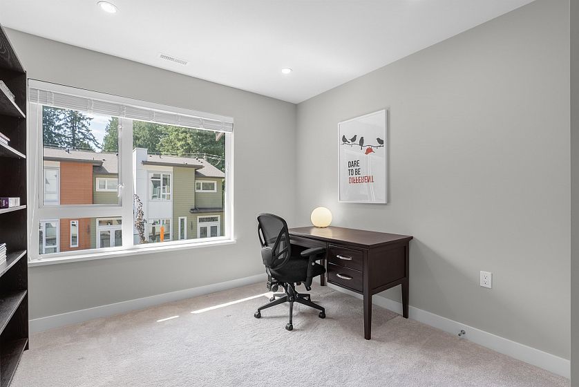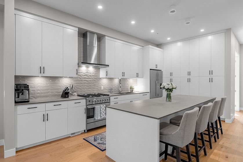 This super quiet, bright, and spacious 3-level luxury townhouse in Canyon Heights/Upper Capilano offers 2261 sq ft of refined living. Features include 10' ceilings, A/C and HRV, built-in speakers, and Wi-Fi light switches throughout. The chef's kitchen boasts a 10-ft island, perfect for entertaining. Also includes a private office/den, mountain-view balcony, and a peaceful inner courtyard setting. Upstairs: 3 large bedrooms, including a luxury primary suite with 5-piece ensuite, heated floors, soaker tub, and separate shower. Lower level: full bath, rec room or 4th bedroom, with walk-out to a private patio. Mint condition. Walk to Handsworth and Canyon Heights schools. Minutes to Edgemont Village, Grouse Mountain, and hiking trails. Flexible closing.