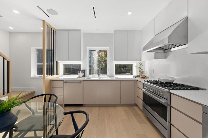 Welcome to 5West built by Asanti homes, a collection of 1, 3 , 3 + Den and 4 bedroom homes offering functionality, and style in every detail! This 3-bed, 2.5 bath fully detached townhouse spans 2 thoughtfully designed levels. The main floor boasts a spacious living room leading out onto the private patio, dining area perfect for large family gatherings, gourmet kitchen, custom BCG cabinetry and integrated appliances. The upper level is perfect for the family retreat with 3 bedrooms all on 1 level with private patios. Enjoy the luxuries of a detached home at an affordable price in a great neighbourhood. The home has an attached garage, storage locker and unbeatable walkability to all of Kerrisdale's amenities. Open House Sat Feb 28th, Sun March 1st 2-4pm