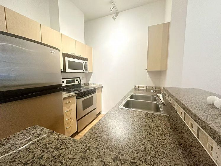 Beautiful, luxury concrete townhome at the award winning GEORGE! - Great location at border of the West End & Coal Harbour. Walking distance to shops & restaurants on Robson & Denman. Stanley Park just a 15 min walk away. This well maintained home boasts 12FT CEILINGS, a wide open floorplan, wood floors, kitchen with breakfast bar, a customized office with built in storage. Street entrance on the quiet side of the building. The kitchen has plenty of cupboard space, granite counters and stainless steel appliances. The upper level features two bedrooms, a master ensuite and a full 2nd bathroom. The building has a large gym, a great caretaker and bike storage. This home comes with 2 side by side parking stalls. Definitely one to see!
