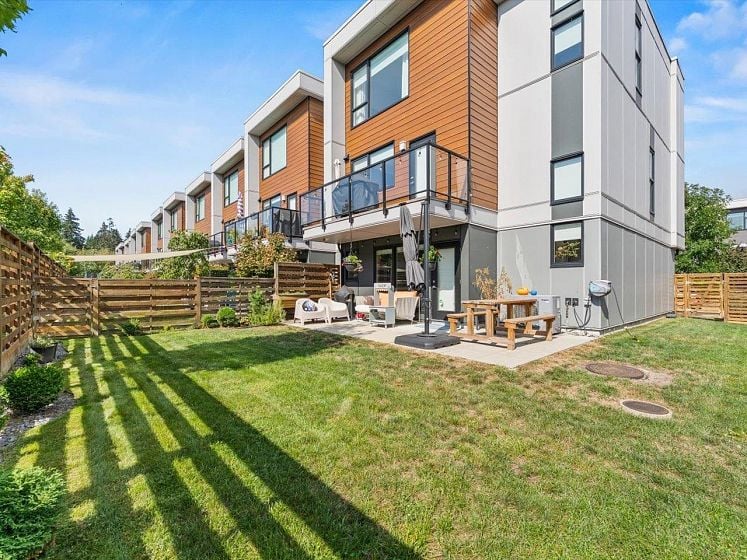 Welcome to Seymour Village, where contemporary design meets West Coast living. This spacious 3-level townhome w/ AC offers over 2,050 sqft w/ 4 beds & 4 baths, perfect for families of all sizes. The open-concept main floor features a gourmet kitchen w/ SS appliances, a generous island, & seamless flow into the dining & living areas—ideal for entertaining. Upstairs, you’ll find 3 bedrooms including a primary suite w/ a spa-inspired ensuite & walk-in closet. A lower-level bedroom w/ its own bathroom provides the perfect guest space, home office, or media room. Enjoy a private outdoor patio & deck, as well as an attached double garage w/ ample storage & EV charging. Offers as they come.