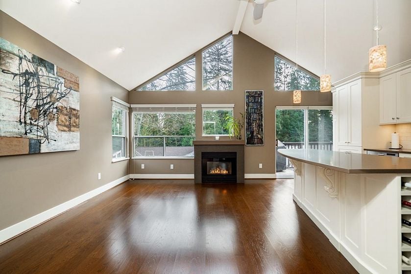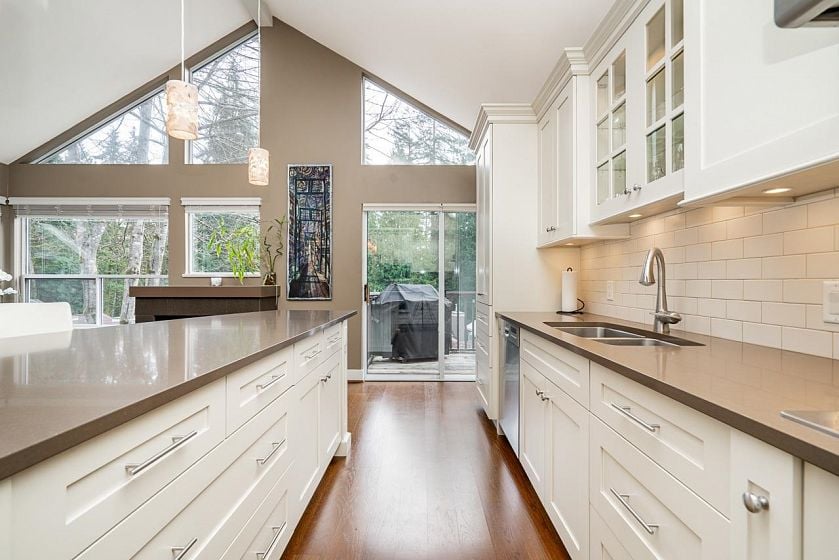 Executive 3 bed, 3 bath end-unit townhouse in sought-after Winchester (Indian River). Renovated, bright, with vaulted ceilings, rain-sensor skylight, heated floors and 2 gas fireplaces. Chef’s kitchen with Electrolux/Bosch stainless appliances, stone island and ample cabinetry opens to a large patio; second patio below. Main-level primary with ensuite; Hunter Douglas window coverings. Lower level: 2 oversized bedrooms, full bath, laundry, plus ~362 sq ft unfinished space for office/storage/rec room. Accessible Poly B replaced; hot water tank 2022. Double garage, heated driveway, gated quiet complex w/ weekly landscaping. Walk to Parkgate Village, Deep Cove, trails, Mt Seymour & Quarry Rock. Some photos virtually staged