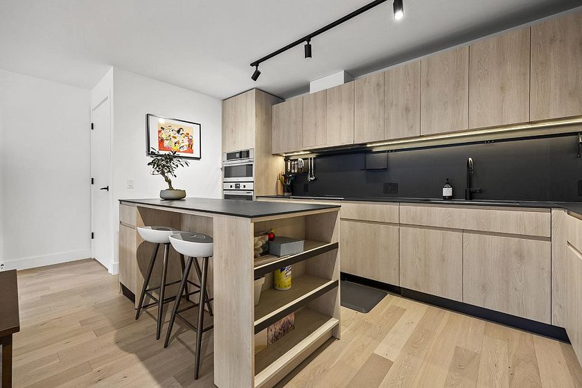 Welcome to FORMAT, quality built by CRESSEY DEVELOPMENT. This modern and quiet 3 Bedroom townhome 2.5 Baths, with a huge private rooftop deck (beautiful city and Mountain View). Upgraded wide brushed oak hardwood flooring throughout & famous Cressey Kitchen with FULGOR induction cook-top, integrated Fridge/Freezer, B/I wall oven & movable island complemented by premium DEKTON counters. Energy-efficient air conditioning/heating system. Functional layout. The home includes 2 side by side parking stalls (1EV charger). Amenities include a fitness centre, communal workspace and a rooftop terrace. Steps to transit, library, shopping & restaurants and adjacent to Montessori Pre-school & Lord Selkirk Elementary.