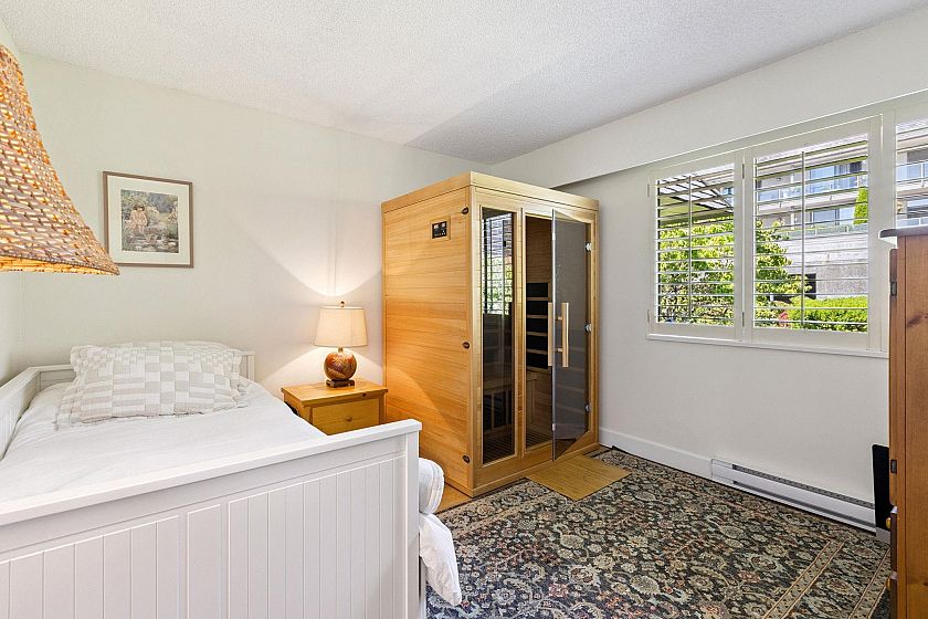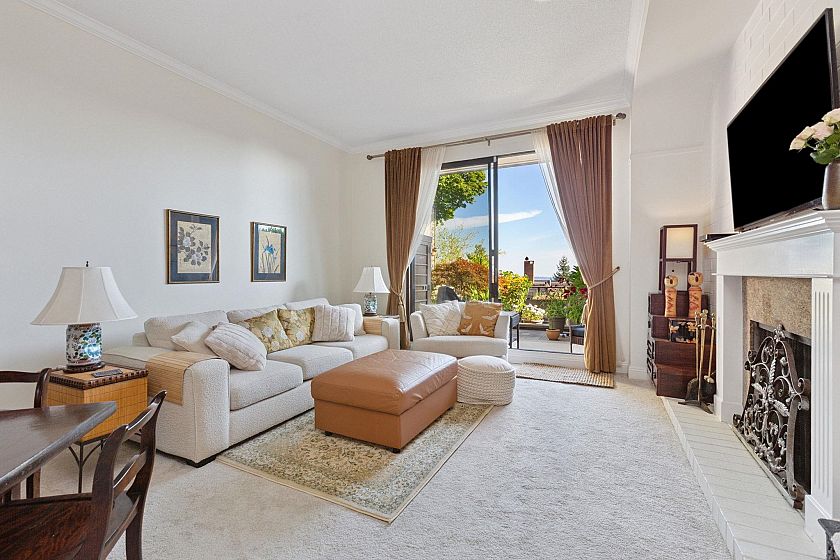 Welcome to this beautiful and incredibly spacious family home in Panorama Village, featuring 2,074 sq. ft. of interior living space over 2 levels with 3 bedrooms and 3 bathrooms, and 453 sq. ft. of outdoor space including garden areas plus 2 patios and an upstairs deck. This home is perfect for both young families and empty nesters. With house-sized rooms and loads of storage, enjoy a beautifully appointed kitchen, hardwood flooring, renovated bathrooms, separate laundry room, sunken living room with 9.7’ ceilings, and a lovely full size dining room. Fantastic primary suite with gorgeous ocean and city views, and adjoining office/den with a wood burning fireplace. Easy access to walking trails, ski runs and golf courses. Coveted WV school catchment for the children. Shows beautifully!