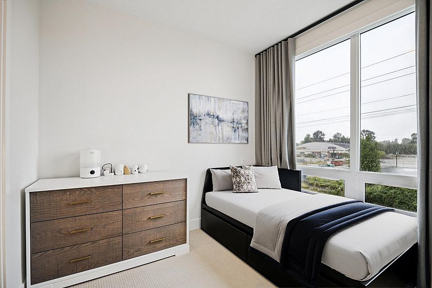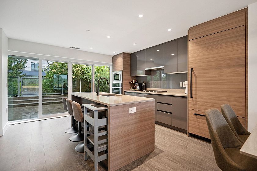Family-friendly River District 3-bed + den, 3 1/2 bath townhouse at Avalon Park 3 with a private rooftop plus 2 more patios one directly off kitchen, each with gas hookups. Filled with plenty of natural light, it offers a modern kitchen with gas stove, premium appliances, blackout bedroom curtains, heated master ensuite floor, and linen closet. Independent heat pump on each level ensures comfort and convenience. Comes with 2 parking (1 EV) + storage. In a very quiet, walkable neighborhood, steps to playgrounds, parks, and tennis courts. Amenities include gym, pool, concierge, guest suites, party room, gardens & green space. Easy access to transit, YVR & Metrotown. These are the most desirable and largest T/H's in River District. Book your showings now!
