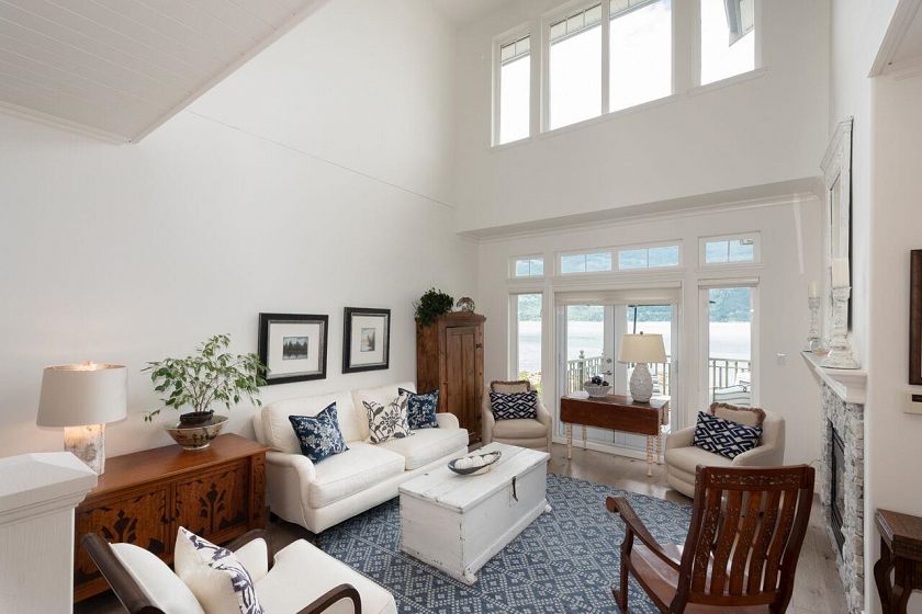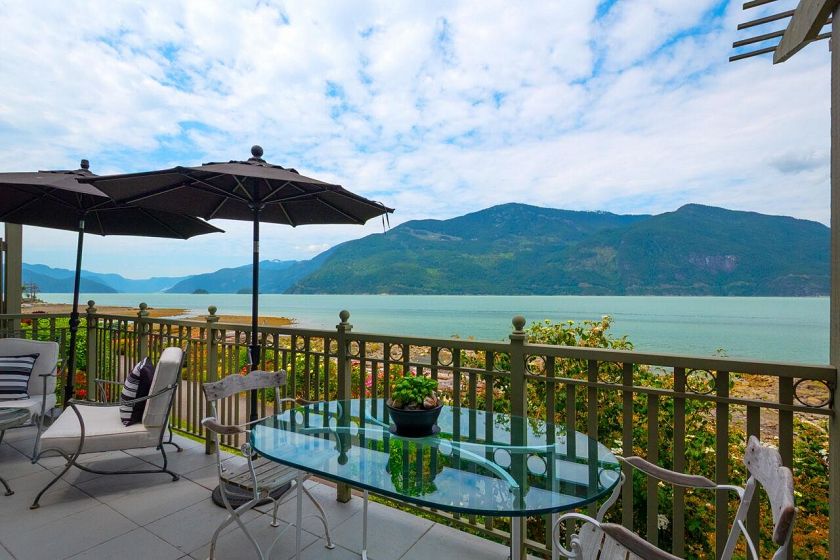 Beautiful oceanfront property with stunning views. This completely renovated townhome has 3500 sqft. Custom designed kitchen features quartz countertops marble tile backsplash, and high end appliances. Hardwood floors on the main and upper levels, wool carpet on the lower. Special shiplap details throughout. An open floor plan, double fireplace, 3 bedrooms, 3.5 baths, large family room and ample storage. This is a quiet, gated community with a recreation centre. the marina is a separate entity available to residents. Outdoor enthusiasts can enjoy several trails in the immediate area. Boating, kayaking, boarding, fishing and golf course are all outside your door. Britannia Beach is an 8 minute drive, Squamish 20, West Vancouver 30 and Whistler 1 hour.