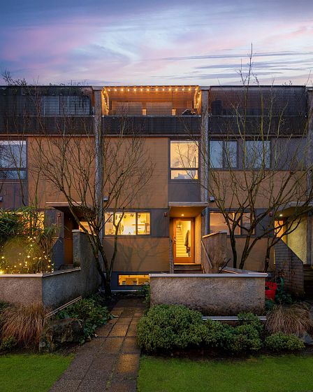 In Mount Pleasant, a boutique townhome by award-winning Vancouver architects Battersby Howat balances quiet luxury with real-world ease. Light pours through oversized windows onto tall ceilings and an updated kitchen with gas range and hard-surface counters, framed by a front-garden view. The main level flows from open dining to a cozy living room, then out to a private, south-facing patio . Two sizeable bedrooms occupy the second floor, while an oversized primary bedroom easily becomes a flex space. A secluded rooftop terrace captures mountain views + sunsets. Below, an attached private garage offering 240 sq ft with storage, a windowed office, and a powder room add rare practicality. The feeling throughout is edited, airy, and effortlessly livable. Showing by private appointment.