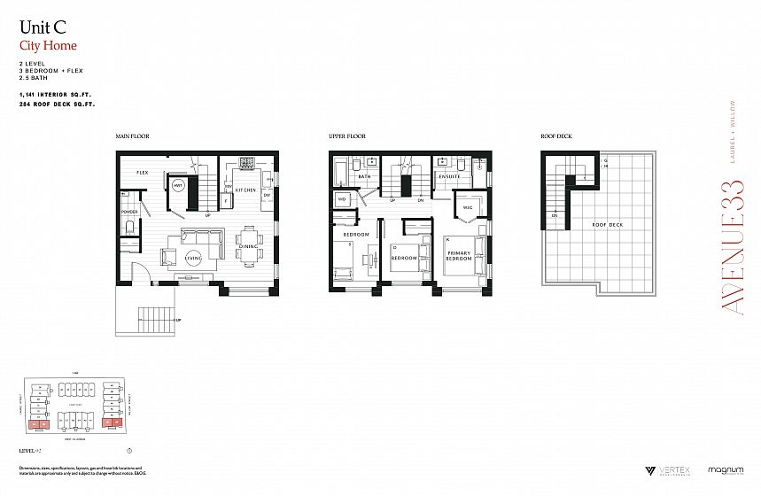 AVENUE 33. Adjacent to Eric Hamber Secondary, walking distance to Van Dusen Gardens, QE Park, King Edward Canada Line & Cambie Village, or quickly connect with Oakridge, Downtown, YVR or Richmond. Just a few Developer held homes remain! Three bedroom MOVE-IN-READY Townhomes in four boutique buildings that frame a secluded private courtyard offer features such as: Air conditioning, 9' ceiling height, Kitchens designed with custom cabinets, quartz countertops and full-size Miele appliances, All homes feature a pull-out pantry, Engineered wide plank hardwood flooring in main living areas, ensuite bathroom floor heating. Rooftop decks with gas and water connections. All homes include 1 EV capable parking with additional parking and storage lockers available for purchase.