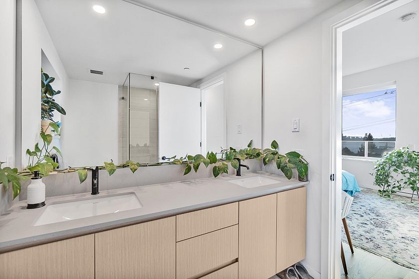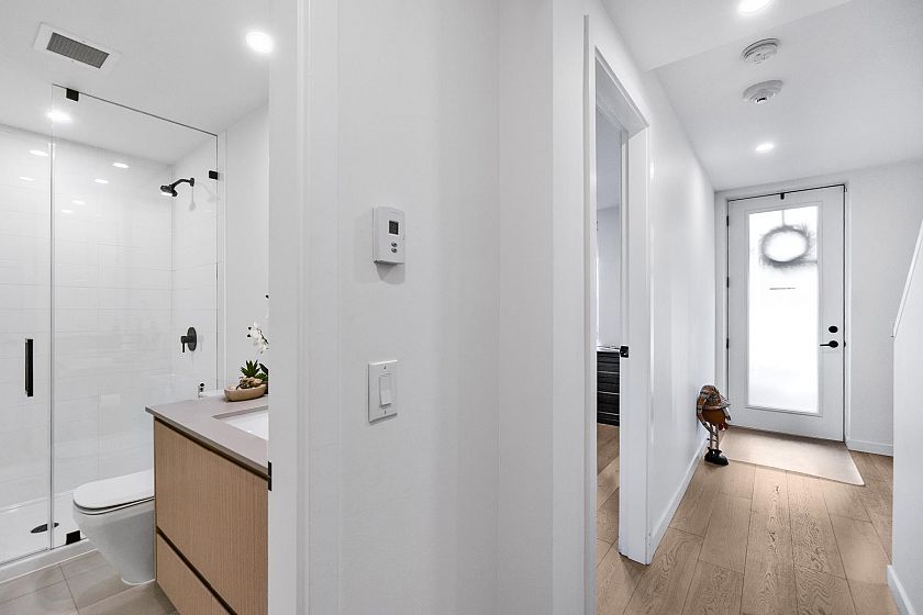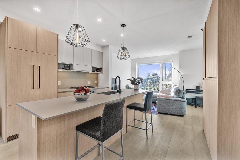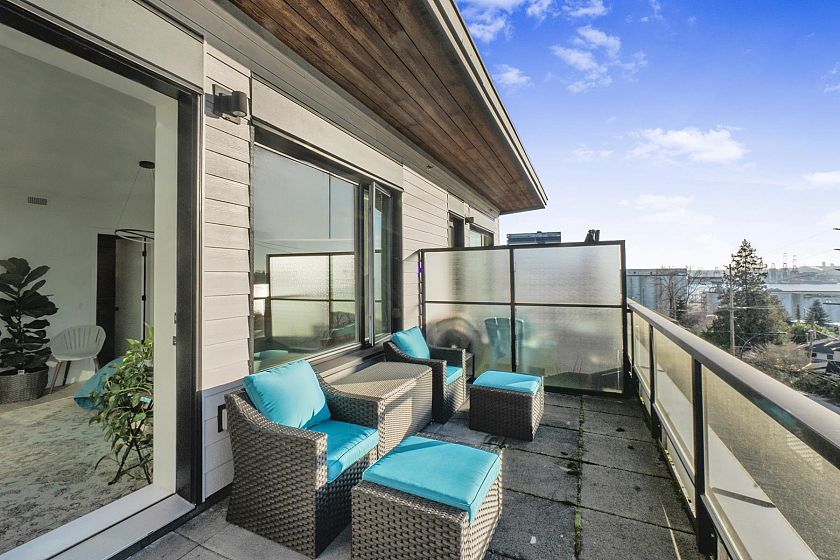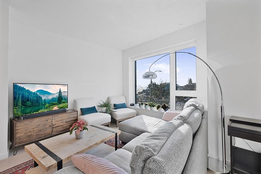 Stunning south-facing city and ocean views in sought-after Moodyville at Founders Block South by Anthem, a quality LEED-certified concrete building. Offering over 2,000 sq ft of interior living space, this spacious residence features 4 bedrooms plus a den, 3 full bathrooms, and three outdoor spaces, including an impressive 450+ sq ft private patio with natural gas, ideal for entertaining. The Scandinavian-inspired interior showcases a bright, modern design with n-floor radiant heating throughout and an HRV system for year-round comfort. Enjoy the convenience of direct access to two secure covered parking stalls and a storage locker. Ideally located just a 5-minute walk to Moodyville Park and 15 minutes on foot to the Shipyards, Seabus, and Lower Lonsdale's vibrant shops, restaurants.