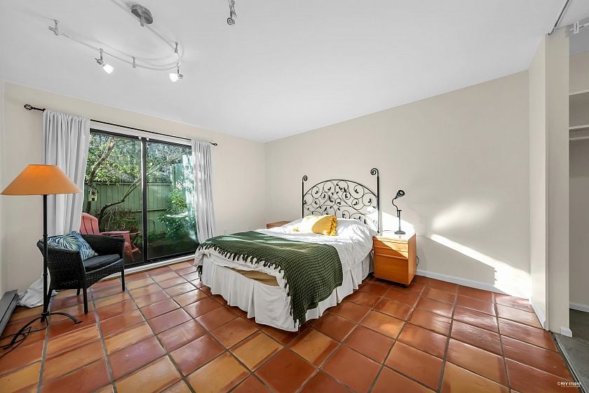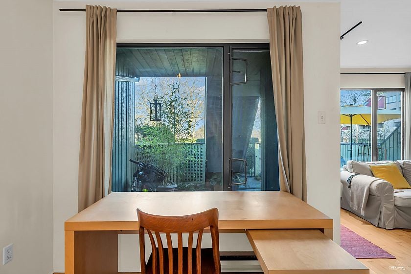 One Level Corner Townhouse On The Park: 2 bedrooms, office, 2 bathrms & 3 spacious outdoor living areas +600 sf.! Beautifully renovated kit. w/granite counter, custom Shaker cabs, SS appl., renovated bthrms, real maple flrs. Views of Park, City, Mts. & some water. The large Pbdrm is ensuite & has its own private west patio. The office has a view on to the east patio. Marine Mews is the best complex in all of False Creek: fully rain-screened, 50 yr. metal roofs, new parking podium & just painted. Pets & Rentals OK. 1 parking-EV charging available, COV lease to 2036 w/option to extend to 2056 w/an attractive end buyout. Steps to the Seawall. Close to everything: Granville Island, school, shopping, restaurants, bus, Canada Line, VGH, Cambie Corridor & downtown. Open:Sunday, March 1, 3:00-4:30