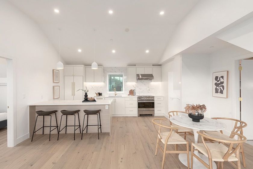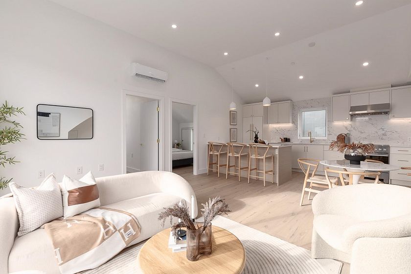 Stunning 3-bedroom/1.5-bathroom coach house in the heart of Main/Fraser! This brand new home boasts 2-level living with an abundance of natural light flooding the home with expansive south-facing windows. Upon entry you will find your first bedroom with an ensuite half bath. As you head upstairs you will find the well-equipped Fisher & Paykel kitchen, modern fixtures, island seating, and an open living and dining area that leads to your private outdoor space. Both bedrooms feel like a primary with vaulted ceilings. The bathroom has spa-inspired features including a light-up mirror and soaker tub. This home comes with a heat pump for year-round comfort with heating and cooling + a parking pad. OPEN HOUSE: Sat Feb 21st from 2:30-4pm & Sun Feb 22nd from 1-3pm
