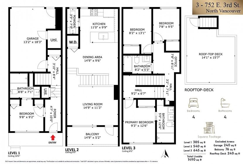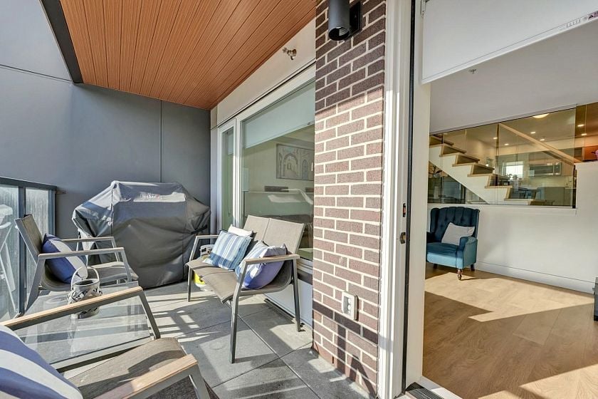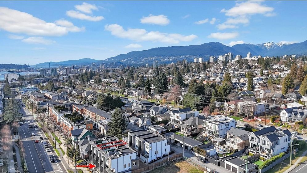 Enjoy the best north shore living at Third Street – a collection of 8 contemporary townhouses in vibrant Moodyville. This stunning energy efficient home provides you w/ open concept living, designer finishes, private garage w/ EV charging & storage space. Modern architectural elements are designed throughout, incl. Scandinavian inspired finishes & a central glass enclosed staircase. Spacious interior w/ 4 bedrooms & 4 bathrooms (1 bedroom & ensuite on lower level that can serve as an income earner). Fabulous chef’s kitchen features premium appliances - a joy to cook in & entertain from. Also features A/C, triple glazed windows, & an expansive rooftop deck that offers views of the ocean & mountains! Open House Feb.28 2-4pm Brochure: https://bit.ly/3-752east3rd