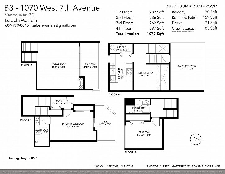Welcome to False Creek Terrace. This 2 bedroom, 2 bathroom 4 level PLUS private rooftop deck townhome features a great floor plan, with tons of windows that bring in natural light and breathtaking city, mountain and water views! With a cozy fireplace in the living room and not 1 but 3 private patios, this home is sure to please whether on a cold winter night or entertaining on a hot summer day! Located on a picturesque tree lined street between Oak St and Spruce St and steps away from Choklit Park, Charleson Park, cafes, restaurants, excellent schools and of course, Granville Island. Comes with 1 underground parking & 1 storage locker. Dont miss your opportunity to renovated your dream home in an incredible location! OPEN HOUSES - SAT FEB 28 2-4pm/ SUN MAR 1 2-4pm