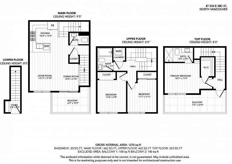 Stunning south-westerly VIEWS from the quiet side of Founders Block North by Anthem. This exceptional 3-bed, 3-bath townhome offers a functional layout paired with Scandinavian-inspired design and West Coast contemporary design. Thoughtfully upgraded throughout, including custom millwork, built-ins and added value of a second parking stall. Impressive top-floor balcony spanning full width of the home, delivers panoramic city views and of Burnaby, Mt. Baker and Stanley Park. Well-run strata with a strong sense of community. Gas and hot water included in fees. Unbeatable walkability: steps to the SeaBus, Shipyards District, breweries, shops and beloved Moodyville Park. An extraordinary opportunity to live in one of North Vancouver’s most vibrant and connected neighbourhoods.