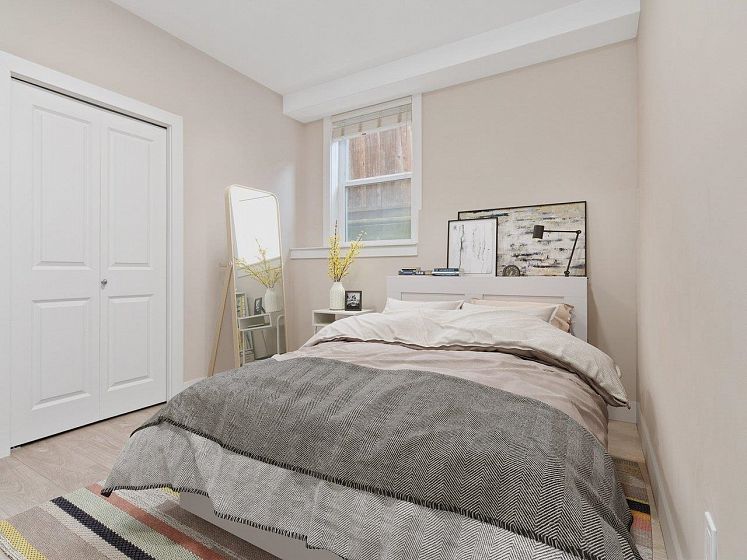 Two-Bed + Lock-Off Rental Suite or Three-Bedroom Corner Unit! Bright corner unit with 9-ft ceilings and abundant natural light. Thoughtfully designed floorplan includes: Two bedrooms, one bathroom, and one kitchen with laundry at the front. Lock-off bachelor suite at the back featuring its own entrance, kitchen, and laundry, perfect for renting out. Previously rented for $1,500/month, allowing you to start collecting rent from day one. East & West exposures fill the home with sunlight all day. Comes with one parking stall and one locker. Prime location: walking distance to 29th SkyTrain station, parks, elementary schools, groceries, and restaurants. Book your private showing today!