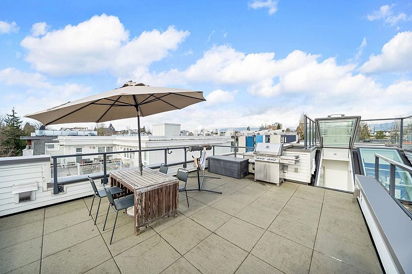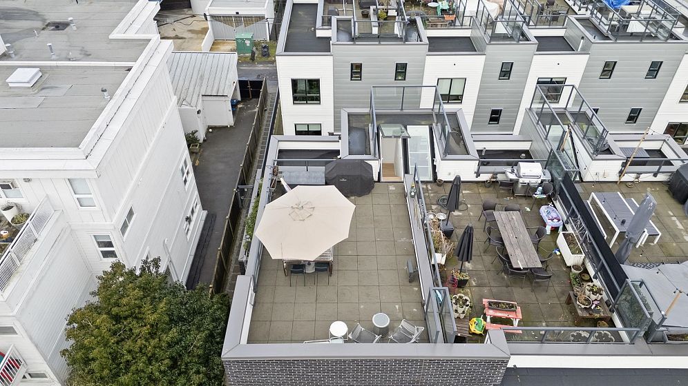 Unbeatable location! Bright corner townhouse at Hayden with one of the best layouts in the complex and extra-large windows for abundant natural light. Built Green certified, this freshly painted 3 bed, 2.5 bath home features refinished stairs and an open-concept main floor with built-in pantry and powder room. All bedrooms are on one level, including a primary suite with walk-in closet. Enjoy city and mountain views while barbecuing from the 360 sq ft rooftop patio. 1 EV-ready parking stall and storage included. Steps to Main Street, parks, cafés, and top restaurants.