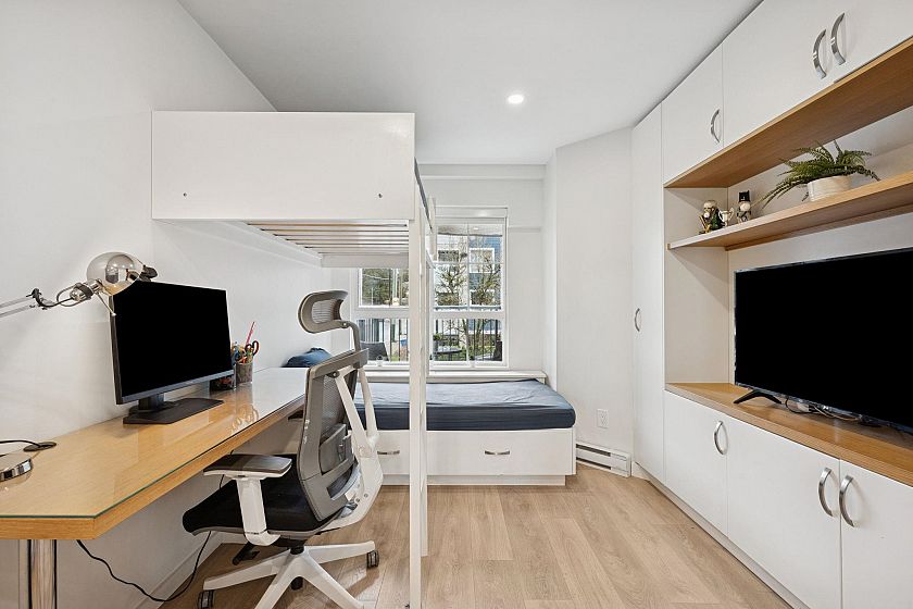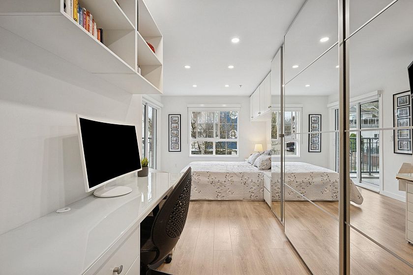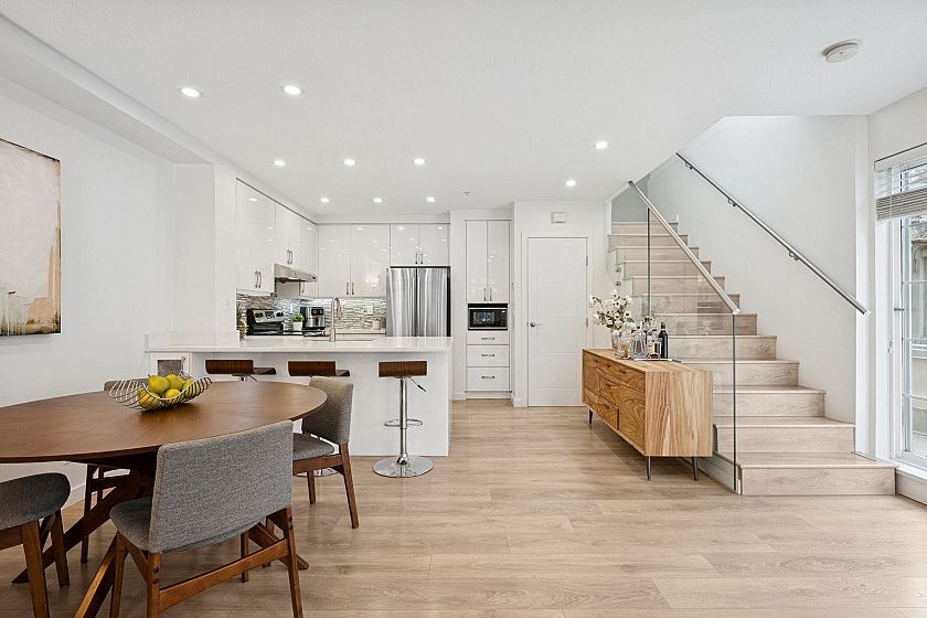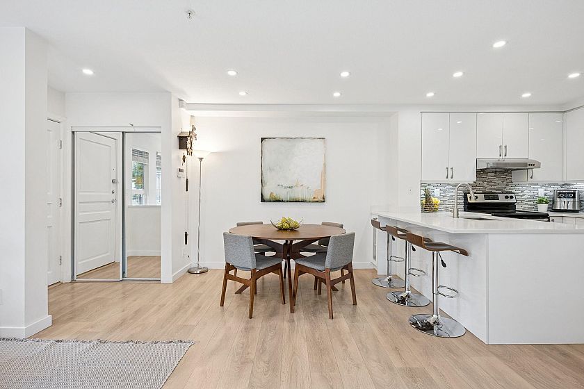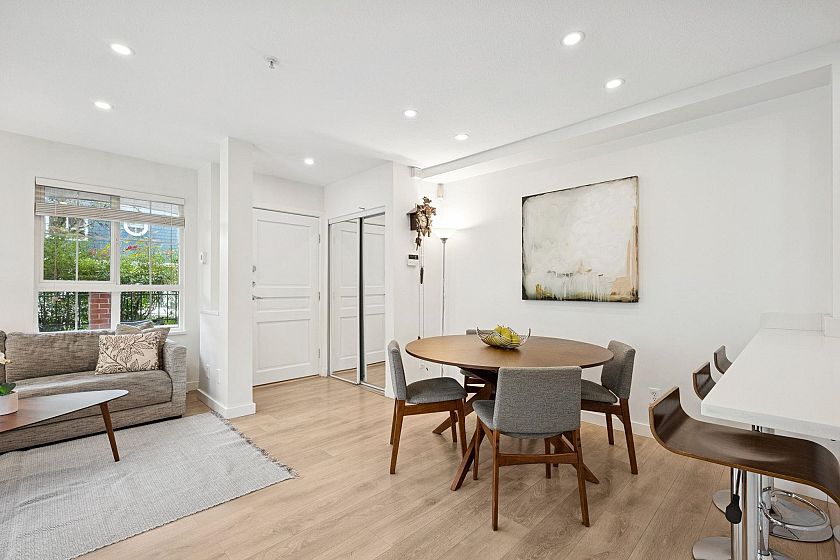 PRIME North of 4th in the HEART of KITS! Welcome to this stunning, bright & contemporary 2 Bed, 2 Bath, 2-level corner townhouse with N exposure in The Sonesta, a classic brick & stone, well-maintained building, quietly positioned on the peaceful side of the complex. Completely renovated throughout, it offers an open-concept kitchen and living area with gas fireplace, S/S appliances, laminate flooring, and built-in closet/storage organizers. Enjoy your private patio, perfect for entertaining, BBQs & gardening. Upstairs, the spacious primary bedroom features an ensuite and a generous balcony, 2nd BDR has great natural light. 2 parking, 1 locker & bike storage. Walk to beaches, shops, and restaurants, bike the seawall from Spanish Banks to Granville Island. Truly a unique opportunity!