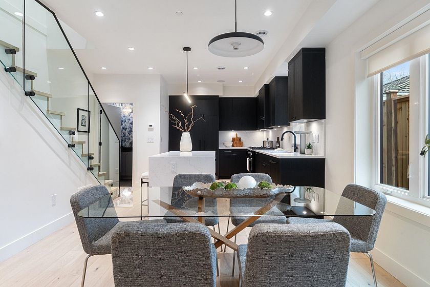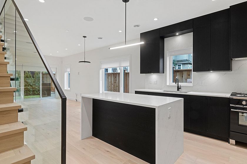 Welcome to The Grant Collection, an exclusive new development on a quiet, tree-lined street in one of East Van’s most beloved family friendly communities. Developed by a longstanding local builder Fina Homes, known for quality craftsmanship and sophisticated interiors. Enter through a fenced yard & patio to this well-appointed & thoughtfully planned 2 level home, ideal for downsizers seeking fewer stairs or young families ready to put down roots. The main is a spacious open plan with a generous living space, dining area and a modern chefs kitchen with integrated Fisher & Paykel appliances, gas range & a island with bar seating. Upstairs has the laundry, 3 bedrooms and 2 bathrooms including the primary retreat with a stylish ensuite and private 227 sqft sun deck. Come see!