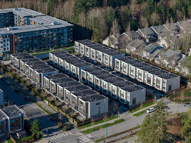Modern Sophistication at Seymour Village. Experience a masterclass in West Coast design in this 3-bedroom + den, 3-bathroom townhome. Spanning three levels with airy 9’ ceilings, the home centers around a chef’s kitchen featuring a five-burner gas range and engineered stone counters. The living space transitions effortlessly to a fully fenced walk-out yard. Retreat to a primary suite complete with a walk-in closet and a spa-like en-suite featuring heated floors. With a ground-floor flex space and an EV-ready double garage, air conditioning and every modern convenience has been considered. The newly opened road provides quick access to Seymour Parkway and all the outdoor activities with new sport fields, two golf courses and the best hiking and mountain bike trails on the North Shore.