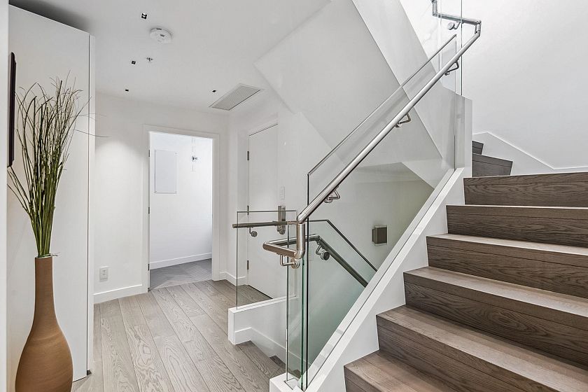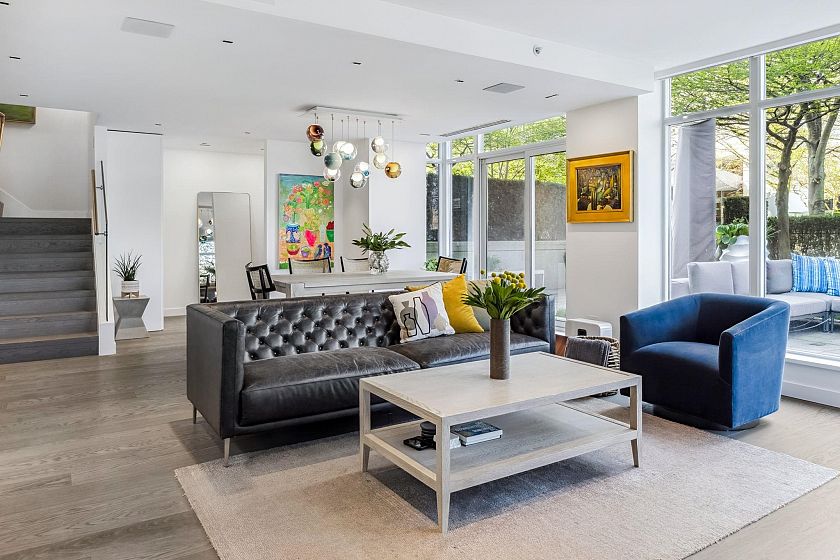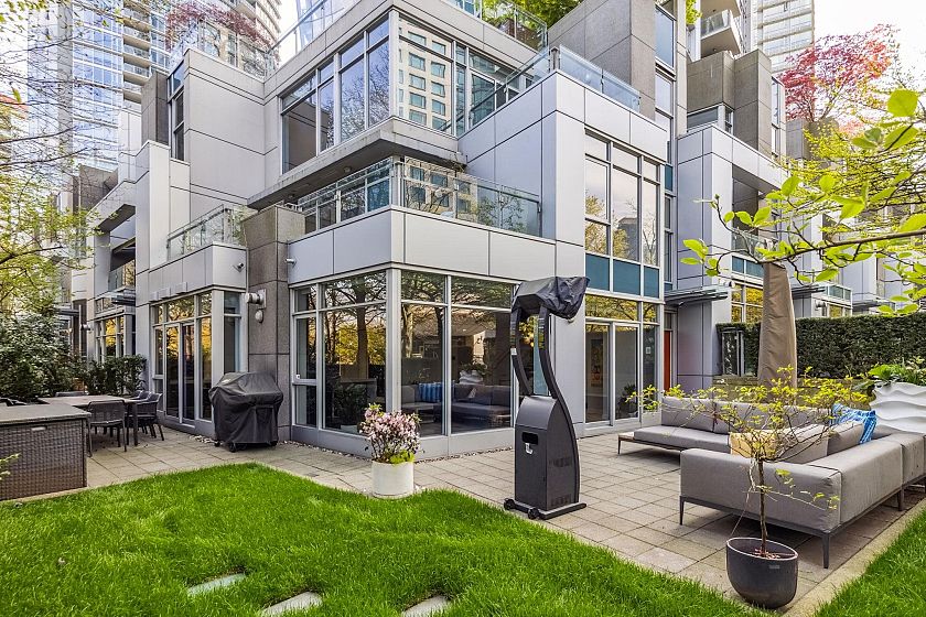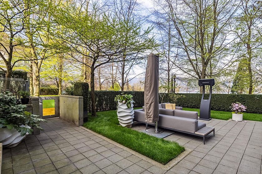 Waterfront Coal Harbour townhouse with stunning views and a house-like feel, featuring a private yard, corner exposure with abundant light, direct seawall entry, private elevator, gated 2-car garage with in-unit access, and private storage. Fully rebuilt in 2021 with Arclinea millwork, Sub-Zero/Wolf appliances, Bocci lighting, security, and Savant smart home with Lutron integration.