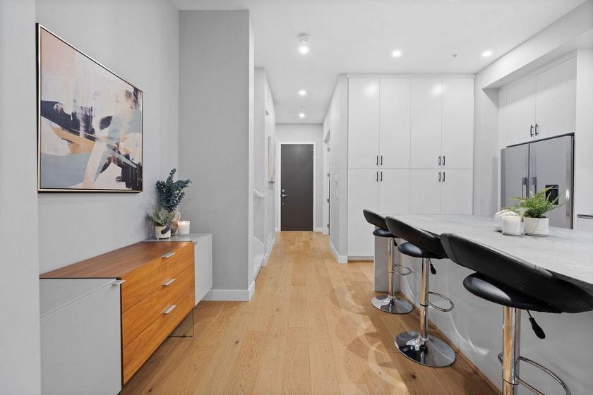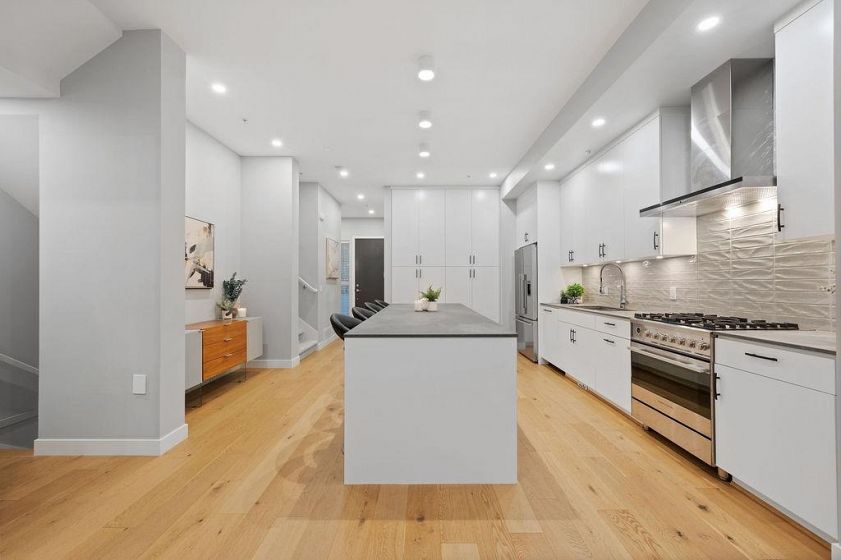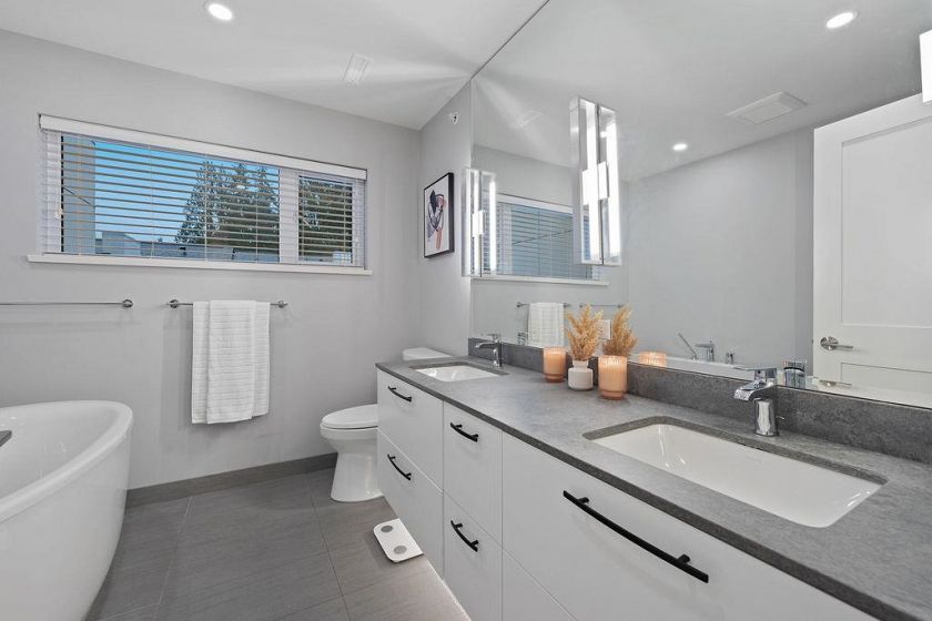 Canyon North is a highly desirable townhome community nestled in a fabulous location in North Vancouver. Built in 2021, this airy and inviting 2,232 sq ft three-level home features 10’ ceilings, AC, an open-concept main floor with a gourmet kitchen, 10-foot island, mountain-view balcony, and a main-floor office that can serve as a 4th bedroom. Upstairs offers 3 spacious bedrooms, including a primary with a luxurious five-piece ensuite, heated floors, and separate tub and shower. The lower level has a versatile rec room with full bathroom, perfect for guests or teens. Enjoy an attached double garage and ample parking. Walking distance to Handsworth Secondary, trails & Grouse Mountain and minutes to Edgemont Village. Enjoy the best of North Shore living!