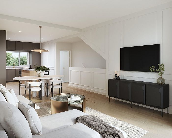 Morrison Walk | This stunning 2-bedroom, 2.5-bathroom townhome offers 1,380sq.ft. of total living space, including 1,088 sq.ft. indoors and 290 sq.ft. of private patios. The open-concept main level seamlessly connects the kitchen, dining, and living areas to a private patio, perfect for entertaining. Upstairs, the spacious primary bedroom features a luxurious ensuite complete with a double vanity, with a sun drenched second bedroom and full bath. Located in desirable Moodyville, North Vancouver, this home is steps from parks, shops, and transit. Customized parking and storage solutions available, yes we have room for all your toys! PRE-SALE OPPORTUNITY. Completion slated for Fall/Winter 2026.