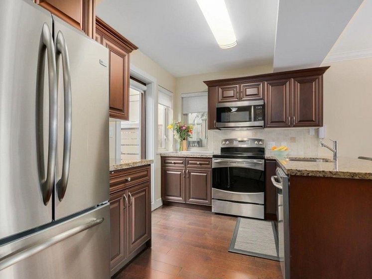 Welcome to Orchard Terrace in vibrant Lower Lonsdale! This rare 3 Bedroom + 4 Bathroom corner townhome offers exceptional privacy on quiet East 4th Street — just 2 blocks from Lonsdale’s shops, restaurants, parks & the Quay. With 1,625 sq ft across 3 levels, this home feels like a detached house. Bright south-facing deck for sunny afternoons, second deck off the kitchen for BBQs, and an upper loft with city & water views. Features include granite counters, maple cabinetry, wood floors, gas fireplace, and a flexible lower-level rec room/home office. Private double garage + storage. Pet & family friendly in Ridgeway Elementary & Sutherland Secondary catchment. The perfect Lower Lonsdale lifestyle for young families! Tenanted Month to Month. Open SAT 2-4