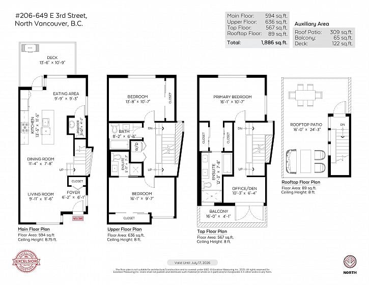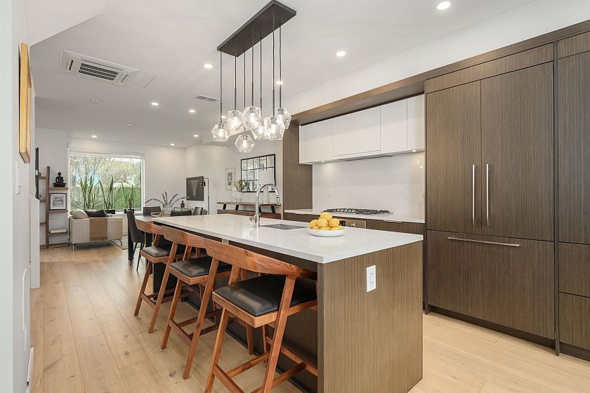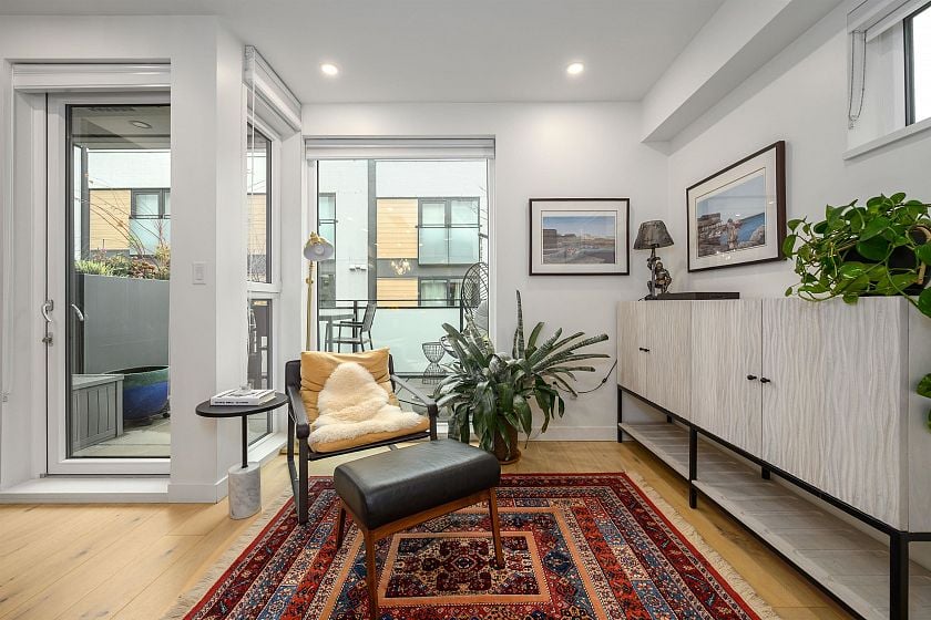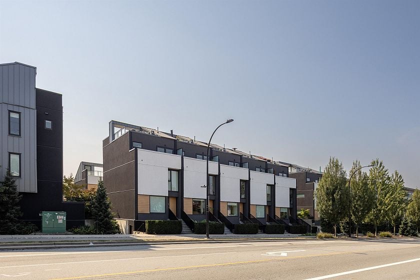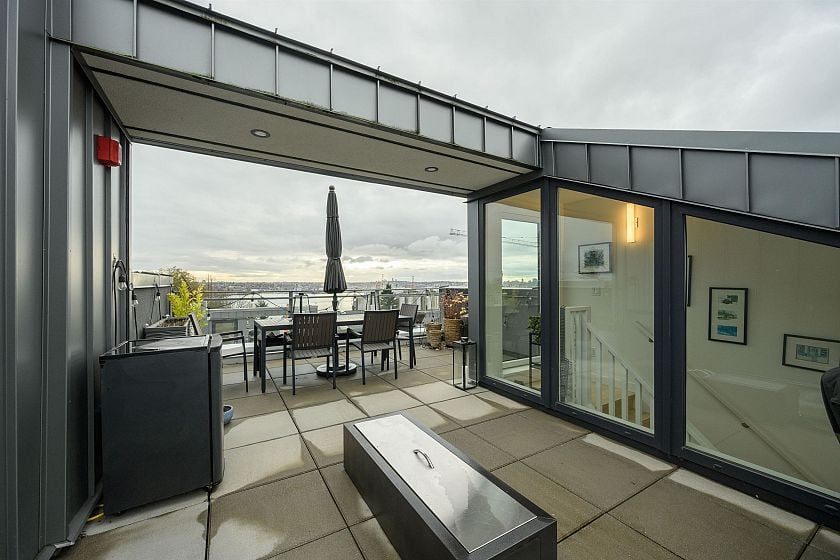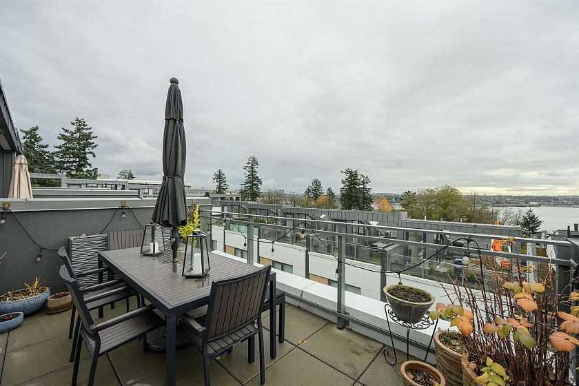 Rare corner unit TH w/ incredible natural light & nearly 1,900 sqft of functional living space in 'The Morrison’. This 3 bedrm + den, 4 bath home was hand picked at pre-sale, enjoying modern finishes & 3 private outdoor areas including a rooftop terrace w/ views from DT to the NS mountains. The home enjoys modern finishes w/ all oak HW floors throughout, a chef’s kitchen w/ quartz island & Bosch integrated appliances that steps out to a south facing patio – ideal for entertaining. The upper 2 levels include 3 large bedrms & 3 full baths (2 ensuites), w/ a spa inspired 5-pc ensuite in the primary & a very practical den – great for working from home! Add in upgrades of A/C; 2 EV ready side by side parking; added built ins, & storage locker. Steps to Moodyville Park, Transit & Lower Lonsdale!