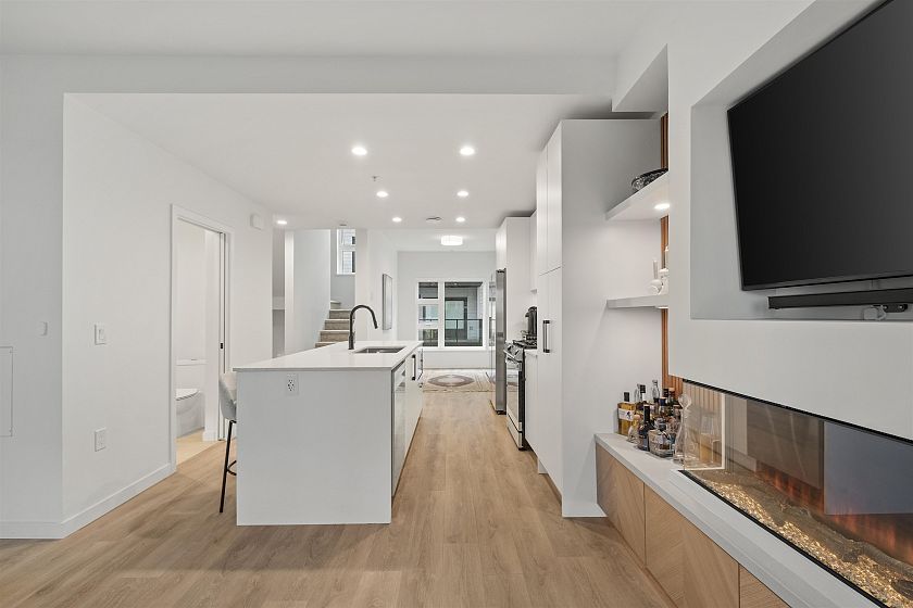 Modern living meets everyday convenience at The Trails, located in the exciting and trendy Moodyville community. This (NO GST) townhome offers a highly functional 4-bedroom layout plus a bright den, providing flexible space for a home office, playroom, or guest area. The main living level is stunning and inviting, featuring upgraded custom millwork, radiant in-floor heat, and a beautiful contemporary kitchen with premium and very handy Smart Hub appliances. Large windows bring in abundant natural light and offer city and water views beyond. A standout feature is the elevated outdoor space, with private decks and patios, perfect for relaxing or entertaining. The home also includes TWO secured underground parking stalls with EV charging installed, along with a storage locker.