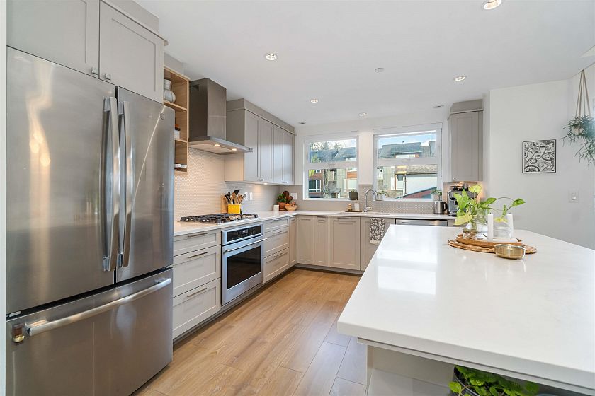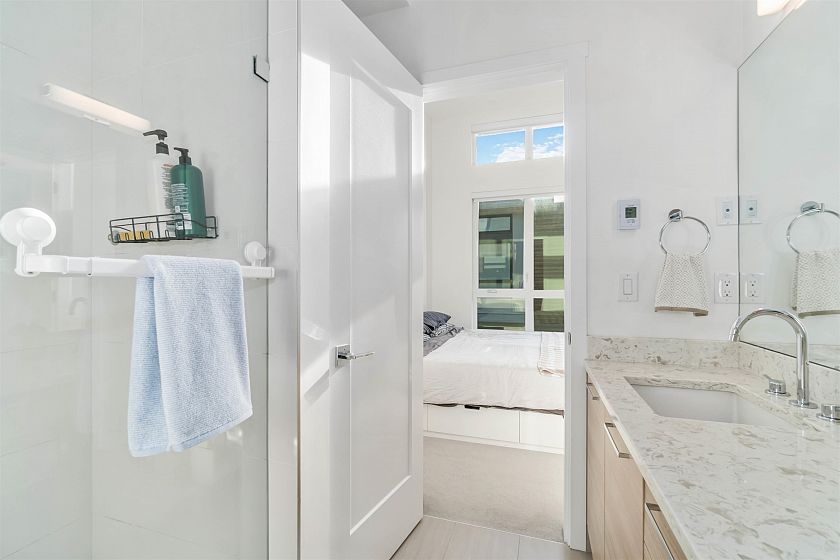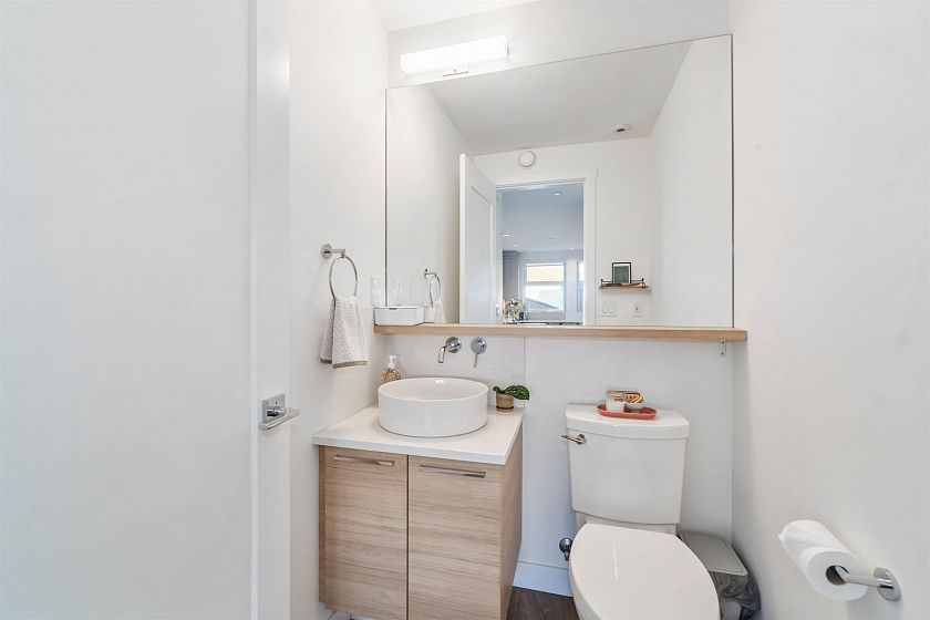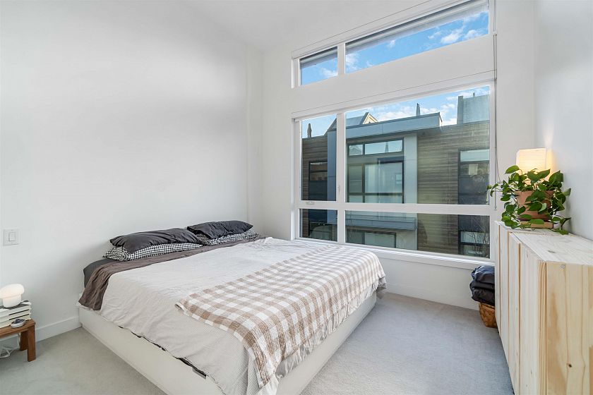 This modern corner unit townhome in the sought after CONTINUUM by BRODY offers a stylish, efficient living with air conditioning, HRV system, on demand hot water and EV readiness. Expansive windows provide abundant natural light and serene green space views. The chef inspired kitchen features stone and stainless steel appliances with ample storage. The master suite boasts high ceilings and spa like en suite. Enjoy outdoor living with oversized private roof top deck with views of dog mountain. Includes double garage with extra storage. Steps to shopping, schools, parks, and easy highway 1 access. Balance of 2/5/10 warranty remaining.