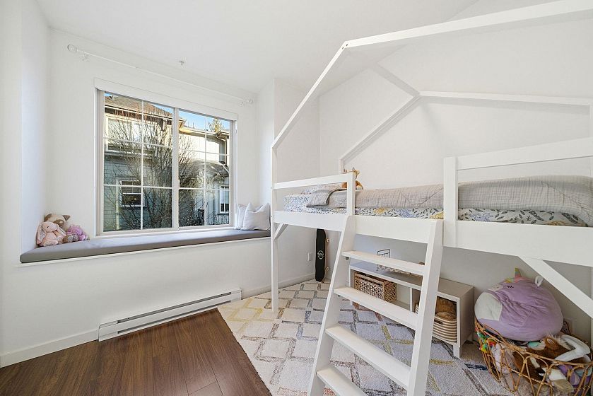 I know there is a family just waiting to be a part of this amazing community! This is the place to fit in & belong...playgrounds everywhere including natural ones like the riverfront beach & everyone's fave farm next door. Inside this home you will find 3 bedrooms + an office + lot's of space to spread out. The separate primary wing on the top floor has a nursery or office space and an ample walk in closet & ensuite. Below are your 2 kids rooms and the laundry room w/storage. The main level is where you find the beautiful kitchen with tons of counter space + storage. Separate dining and lounging areas, lead out to the sunny patio with both water & electricity. This complex, surrounded by natural beauty is still only steps away from restaurants, shopping & more! 2 parking + storage locker.