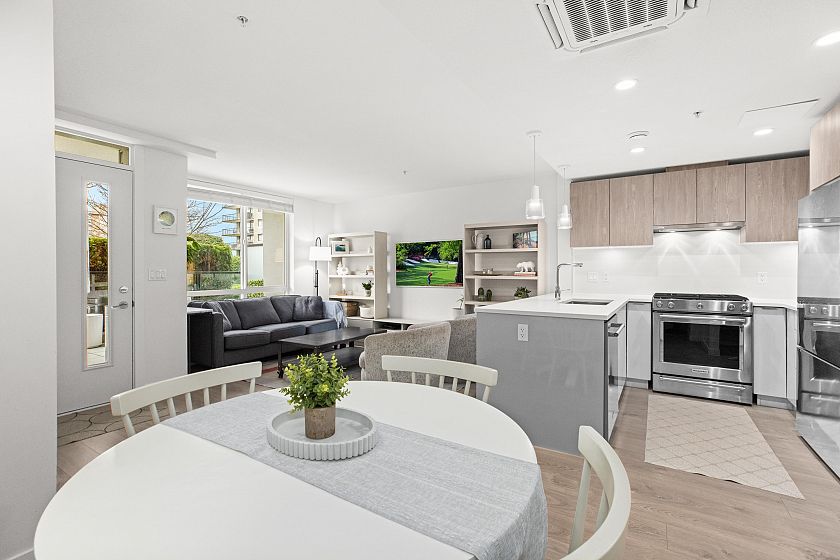 Garden level townhome at 'The Crest' by Adera. This well-laid-out, two-level concrete home features a great layout and design, offering over 1,000 sq. ft. of interior space, 2 bedrooms, 3 bathrooms, two generously sized, south-facing patios, and air conditioning throughout. Located on a dead-end street on the 'Crest' of Lonsdale - a short stroll to Lower Lonsdale and steps from plenty of shops and restaurants. This 5 year old complex is well built and well managed; it also includes a beautiful social lounge and a gym. Pet friendly building with a dog park at the end of the street. Includes one parking spot and one storage unit.
