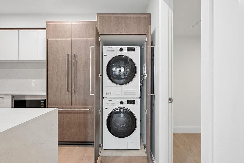w45th at Oakridge Town Centre is quietly tucked into a tree-lined residential street, yet steps from oakridge-Vancouver's Newest Global Luxury & Lifestyle Hub. A curated collection of garden flats, townhomes, and duplexes offering thoughtful layouts, modern functionality, and elevated materials. These homes emphasize natural light, refined detailing, and a sense of tranquility that echoes the neighbourhood outside. Interiors designed with everyday luxury, oversized windows for natural light, wide plank engineered hardwood flooring, over height ceilings up to 9ft and air conditioning in every home. Kitchens include premium integrated appliances from Fisher and Paykel, quartz countertops, and contemporary cabinetry with shaker-style. Underground parking included for all homes.