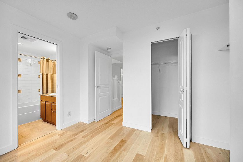 CONCRETE END-UNIT T/H 2 bdrms, den + office 1,229 sq ft. Newly updated w eng HW flr + fresh paint! No wasted space, lots of convenient storage + rare BONUS 2 parking (+ lckr). 1st flr ideal for entertaining w/large kitchen, dining, lvng room, 1/2 bath + raised/private 114 sf fenced patio. The 2nd bdrm w/large closet, enste bath + a HUGE den on 2nd flr (can be 3rd BD). The master ste is on the top flr w/a spacious walk-in closet, ensuite bath + private balcony + office. Inside location very quiet + shielded from busy streets + private. BUILDING: Solid, well-run complex w/onsite caretaker, well-equipped gym, rooftop courtyard + plygrnd. Pets + rentals OK. NEIGHBOURHOOD: 10 mins to everywhere, on 3 transit routes + incl library, TD Bank + Save-On Foods + restaurants, cafes + Kings Crest Park.