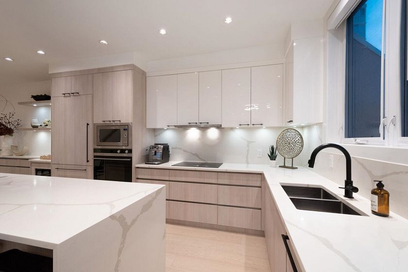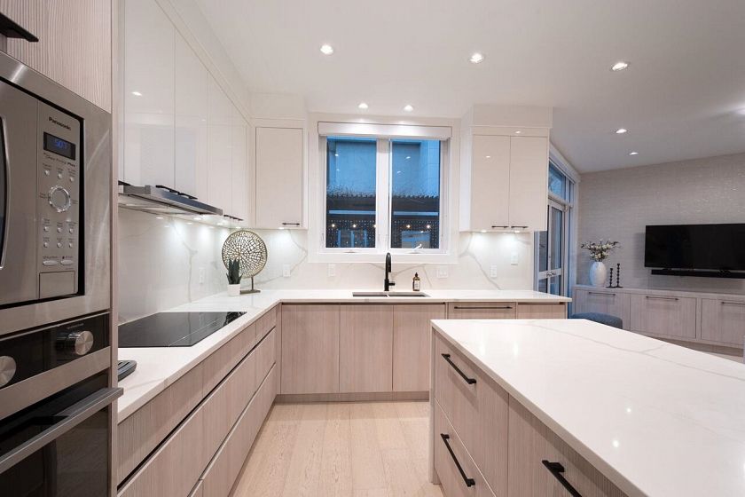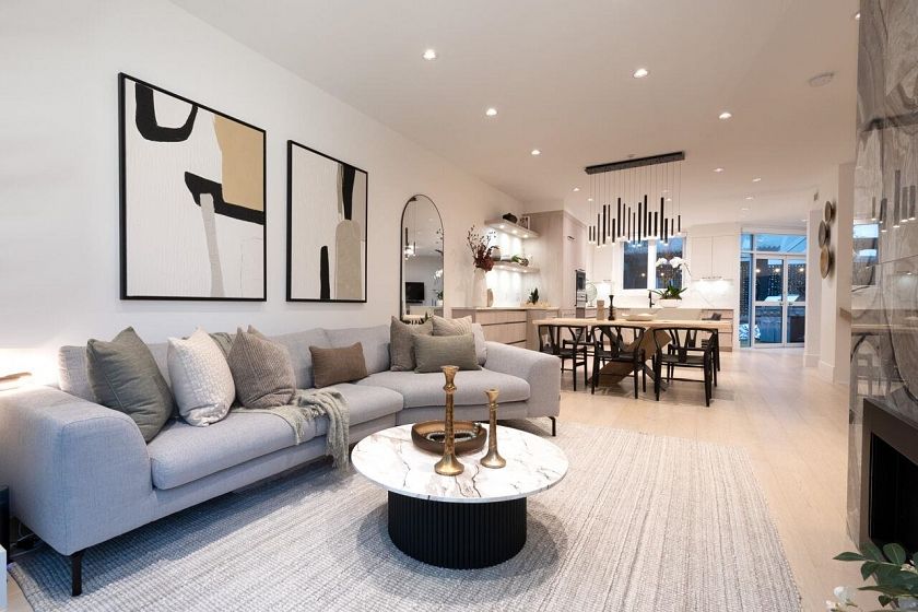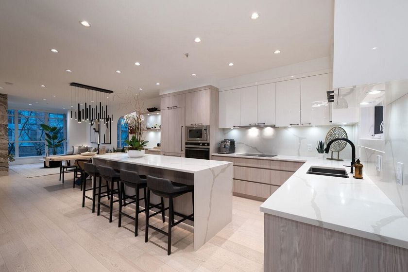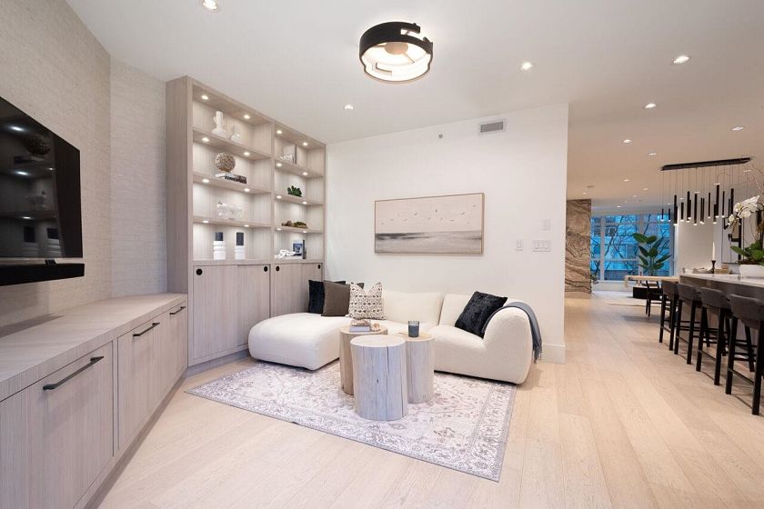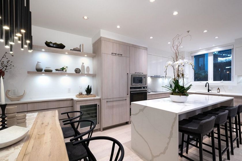 Rare offering in a newly gated community. Beautifully reimagined townhome in one of Vancouver’s most desirable locations. Thoughtfully updated with quality craftsmanship and upgrades beyond cosmetic updates, creating a home that feels comparable to a new build. The main level features an impressive 9-ft entertaining island with integrated fridge, custom cabinetry, Fisher & Paykel appliances, and exceptional storage. Over-height ceilings enhance the open living and dining areas capturing lovely city views. Rare 3 bedroom layout + office — one of the most functional layouts in the complex. Featuring A/C and 2,113 sq ft of interior living space, plus a 497 sq ft attached garage, and a rare 3rd parking space. Extensively upgraded. Steps to the seawall, parks, transit & shops.
