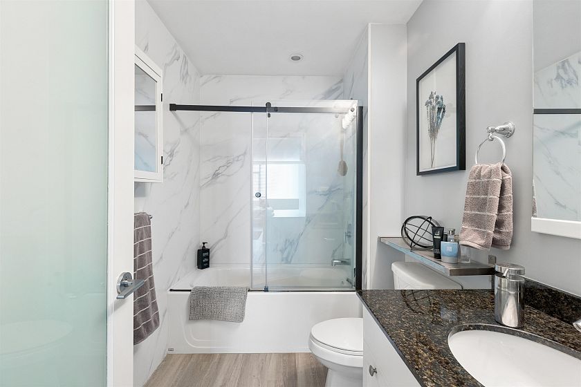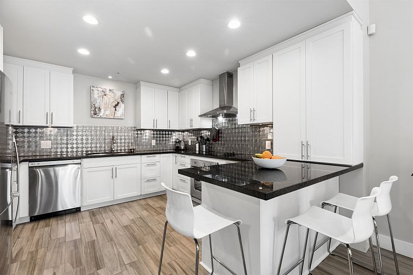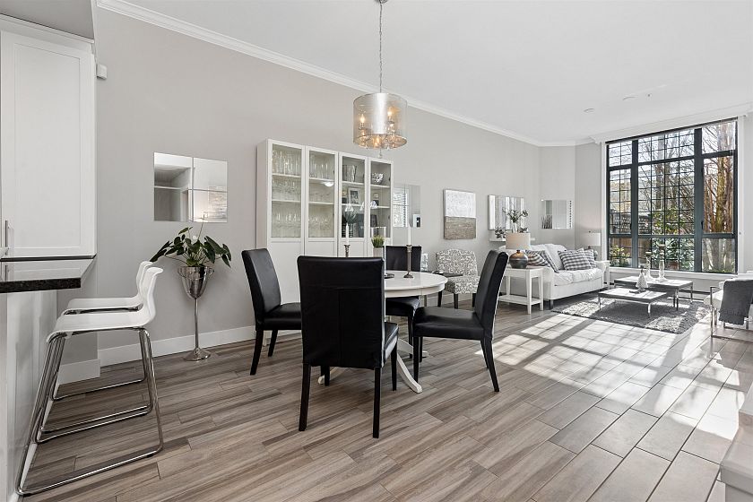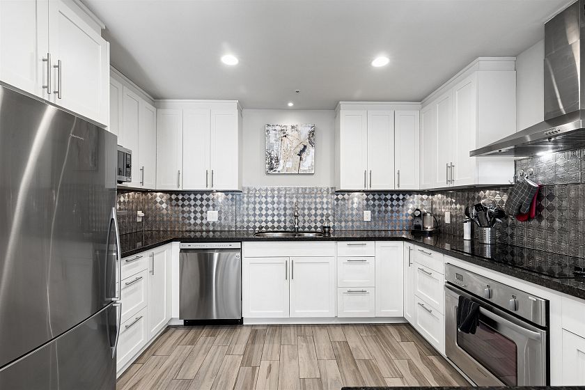 Rarely available New York-style two-level townhouse at Rosedale Gardens, elevated above street level with a gated entry for exceptional privacy in the heart of downtown. The spacious main floor features soaring 10-ft ceilings, an open-concept layout, and a chefs kitchen with integrated appliances designed for easy entertaining. Upstairs, the generous primary bedroom retreat offers a true sense of space rarely found in city living. Enjoy a large, sun-filled patio perfect for indoor-outdoor living. Complete with two parking stalls and a storage locker, plus access to hotel-style amenities including concierge, pool, and gym-all just steps to Robson Street, Yaletown, the Seawall, and Vancouver's best shopping and dining. OH SAT 2-4PM