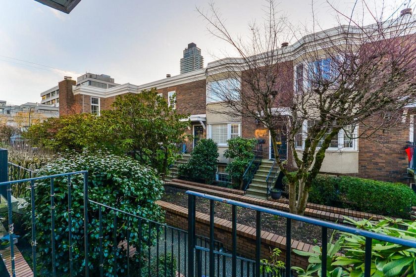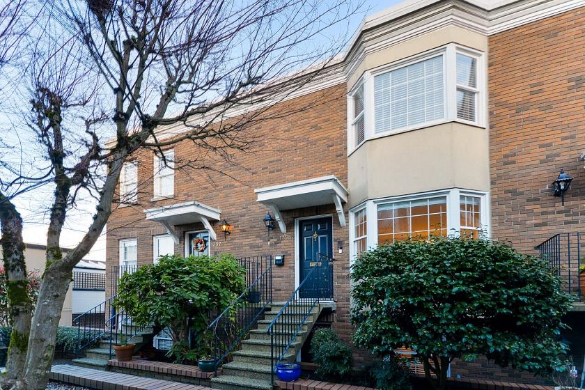Rarely available classic inspired townhouse elegantly sitting in a unique courtyard with wrought iron gate entry. this over 1500 sqft spacious TH offers a huge primary bedroom plus a good size of den which could be enclosed as an extra bedroom. Below main there is a bedroom going out to a spacious balcony/patio and a family room with wood burning fireplace for family entertainment. Bay windows and skylight . Freshly painted. Walk to Broadway/Granville shopping/restaurant district. Short stroll to Granville island. Open House Sat. March 14, 3-4:30.