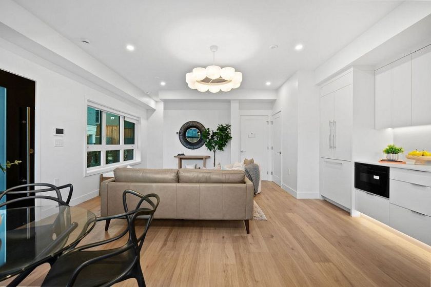 Tucked into prestigious Shaughnessy, this exceptional 2-bedroom back residence offers almost 1,100 sq.ft. of beautifully designed living across two levels. Thoughtfully curated by Mullo Interiors, the home features custom millwork, wide-plank hardwood floors, quartz countertops, & premium Fisher & Paykel appliances. The main floor showcases a bright open-concept kitchen & living area that extends seamlessly to a private patio—perfect for entertaining. Upstairs, the serene bedroom level offers 2 balconies, spa-inspired bathroom, & ample built-in storage. Enjoy year-round comfort with air conditioning & peace of mind with a 2-5-10 New Home Warranty. Crafted with exceptional quality & attention to detail by Four Corners Homes, this beautifully finished residence is ready to welcome you home.
