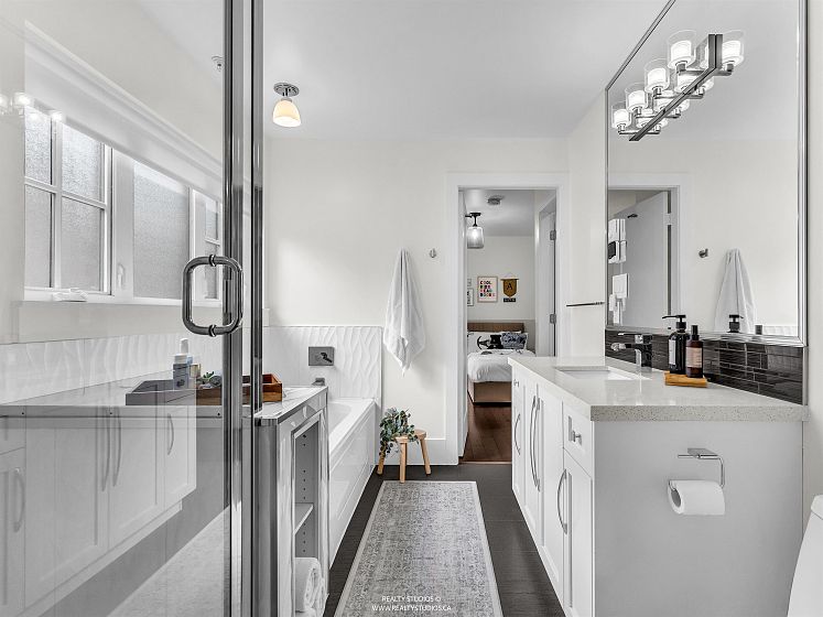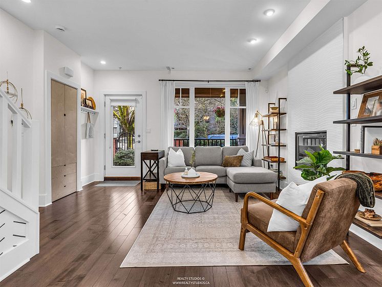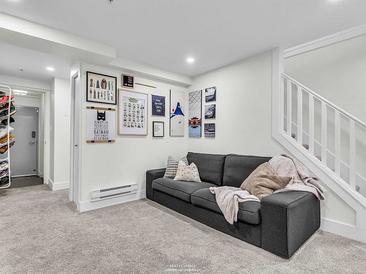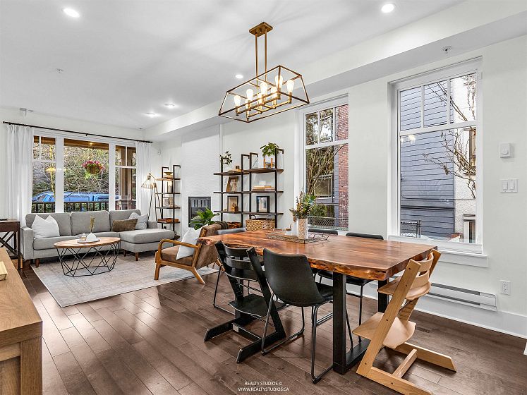Tucked in a boutique strata on one of Mount Pleasant’s coveted cherry blossom-lined streets, this sun-drenched, south-facing townhouse offers bright open-concept living with 9’ ceilings and wood floors, opening to a private fenced yard. The kitchen shines with quartz counters, marble mosaic backsplash, stainless steel appliances (including gas range), and custom pantry/built-ins. Upgrades include voice-controlled lighting, Mysa thermostats, pot lights, custom window coverings, new hot water tank, and Wi-Fi security. A permitted lower-level renovation (2024) adds a versatile bedroom + rec room with direct access to secure underground parking. Walk Score 100: Michelin star restaurants, breweries, and coffee shops, as well as the new Skytrain station, schools, parks, community centre/library!