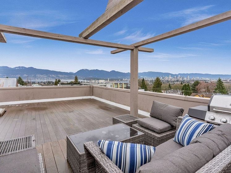 One of a Kind! SPECTACULAR 624 SF ROOF TOP DECK. Unobstructed views of WATER, CITY & MOUNTAINS - 2 LEVEL . 3 BDRM Dunbar townhome Great Features Inc Private Master bedroom, Large Master Bath with soaker tub and shower, WI Closet, Maple HW Floors, Radiant Floor Heating. Glass Railing, Large kitchen, the 3rd Bedroom/ Den is perfect for a home office. Private Roof top deck is huge with gas hook up for BBQ, water for irrigation, space for a hot tub.