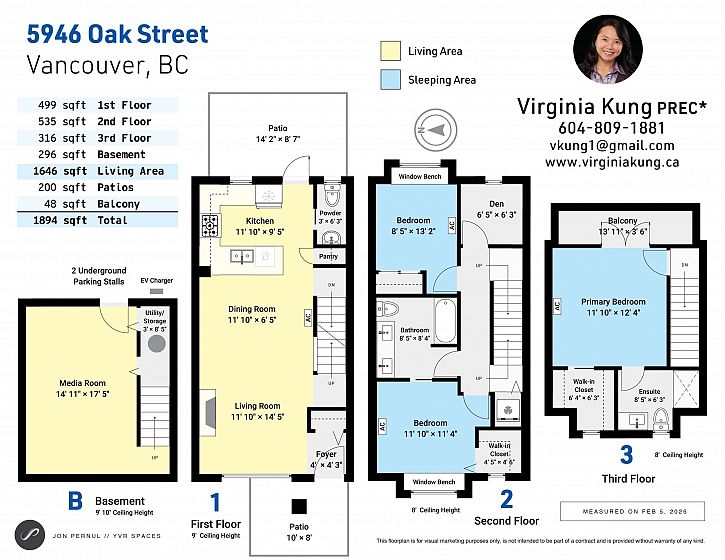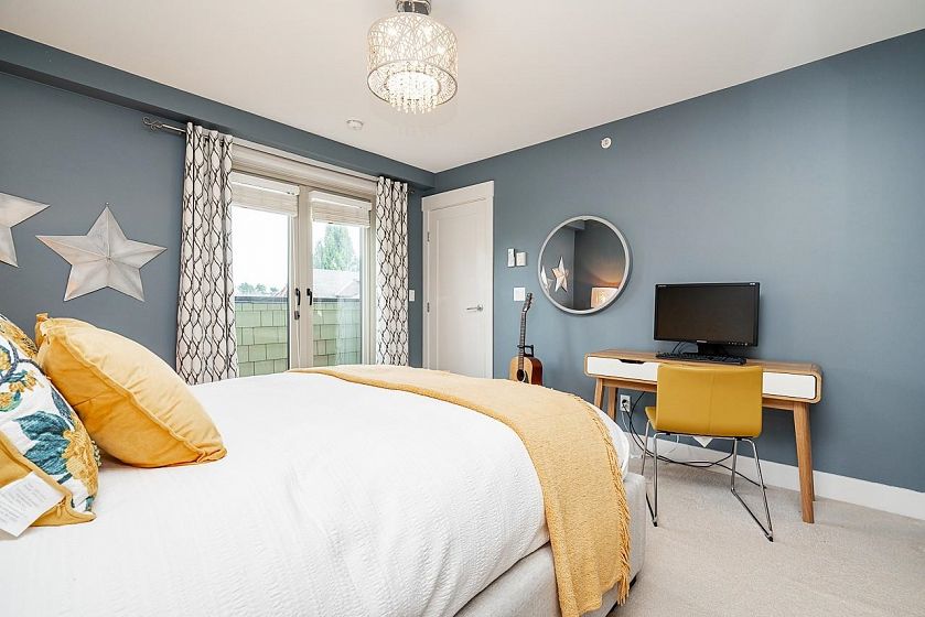 Amazing Spacious 3 Bds, 3 Bath+Den & Rec Room Townhome w/ So Much to Offer! Great Open Floor Plan w/9’ft High Ceiling & Built-in A/C, Cozy Gas Fireplace, Beautiful Hardwood Flr, Large Modern Bright Kitchen w/Sleek Quartz Countertops, Breakfast Island, Fisher & Paykel S.S. Appls, Gas Range, Custom Built-in Large Dble Drawers D/W, lots of Cabinets + Pantry! Large Master Bd w/Walkin Clst & Full Ensuite + Balcony w/City View, 2 Large Bds w/Bay Windows & Benches, One Bd w/Walkin Clst & Ensuite w/Dble Sinks & Large Soaker Tub, + A DEN. Awesome Entertainment Rm in Bsmt w/Built-in Screen Projector & Sound Systems, Great 10’ft High Ceiling w/Lots of Built-in for Sports & Rec Equipment & Storage + Direct Access to Your 2 Pkg Stalls, Equipped w/Built-in EV Charger. 2 Fully Fenced Patios Front & Back