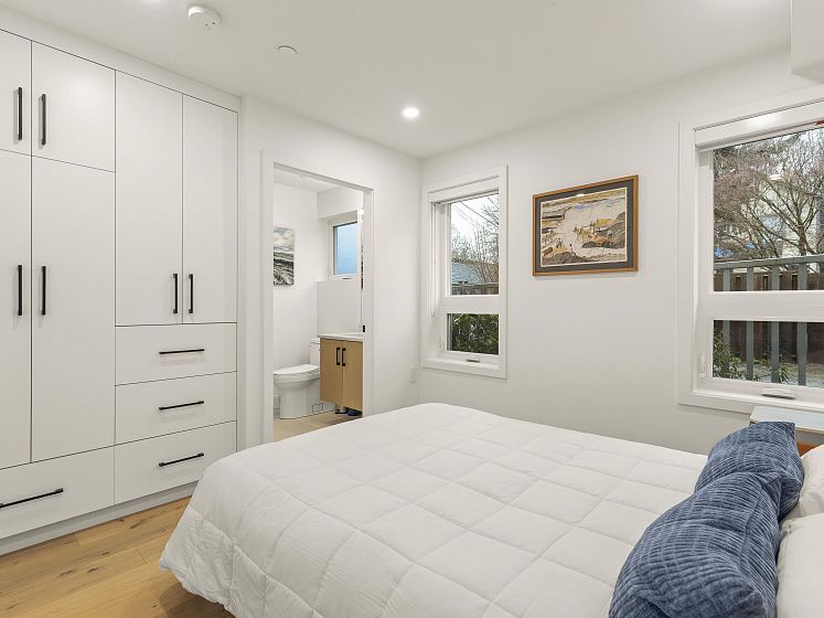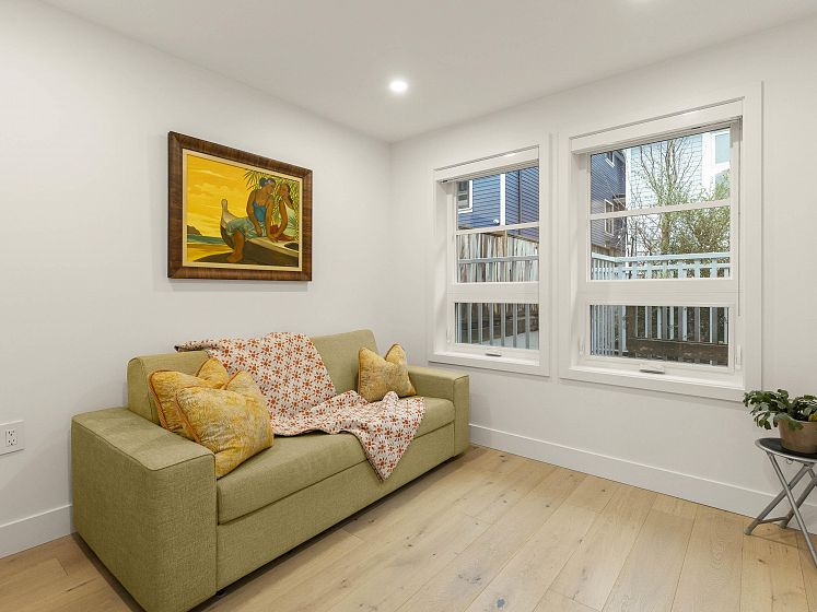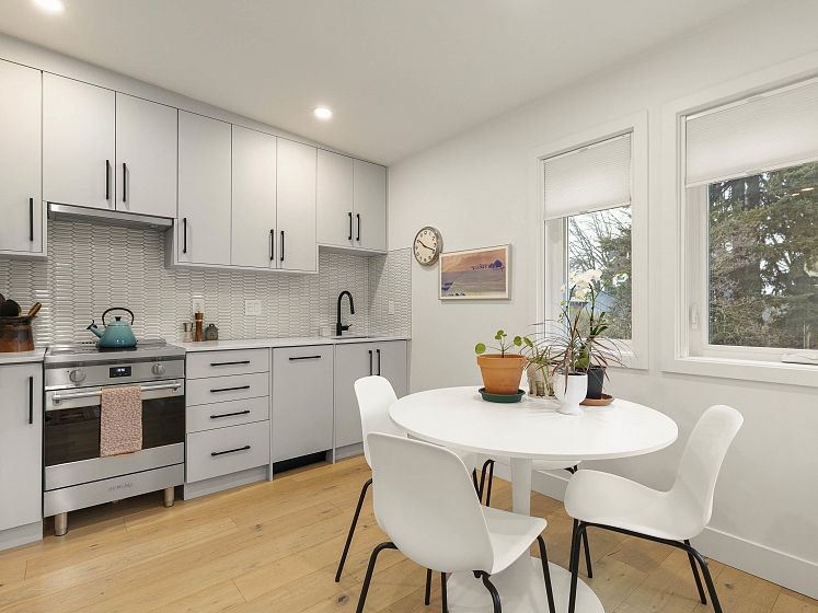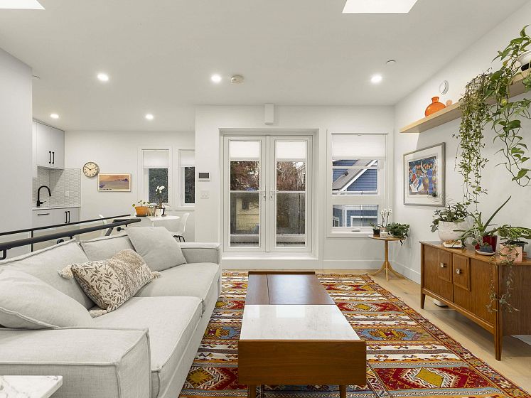 Surrounded by charming character homes in the heart of Mount Pleasant, this thoughtfully designed two-level COACH HOME blends modern comfort with timeless appeal. The upper level feels bright and airy, with vaulted ceilings and skylights enhanced by luxurious Hunter Douglas motorized blinds for ultimate ease and comfort. The beautiful kitchen offers sleek modern cabinetry, a hexagon tile backsplash, upgraded appliances, and stone countertops—perfect for everyday living and entertaining. Enjoy a delightful garden patch, a south-facing patio, an additional balcony, and a private single-car garage. Enjoy everything Mount Pleasant has to offer, with Robson Park and a fantastic selection of restaurants, cafés, and coffee shops just steps from your doorstep.